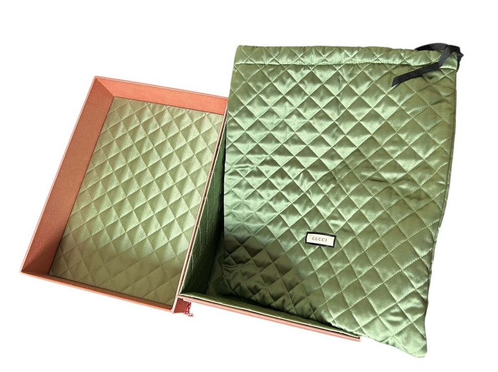 RARE Gucci Limited Edition Large Silk Gift Box with Green Quilted Drawstring Bag