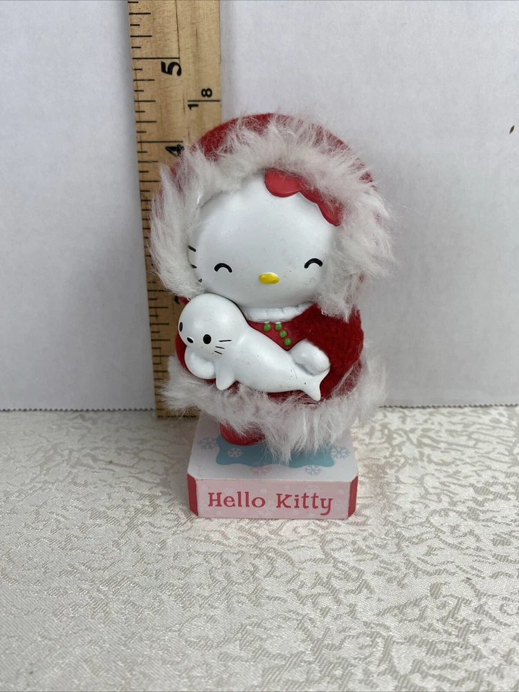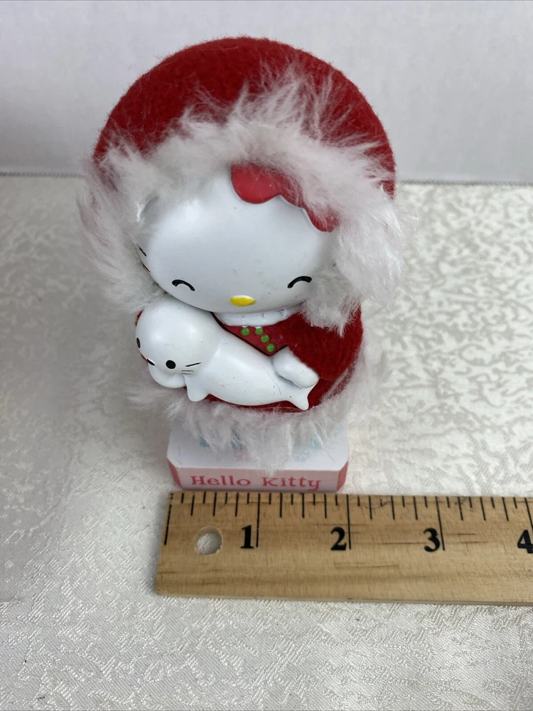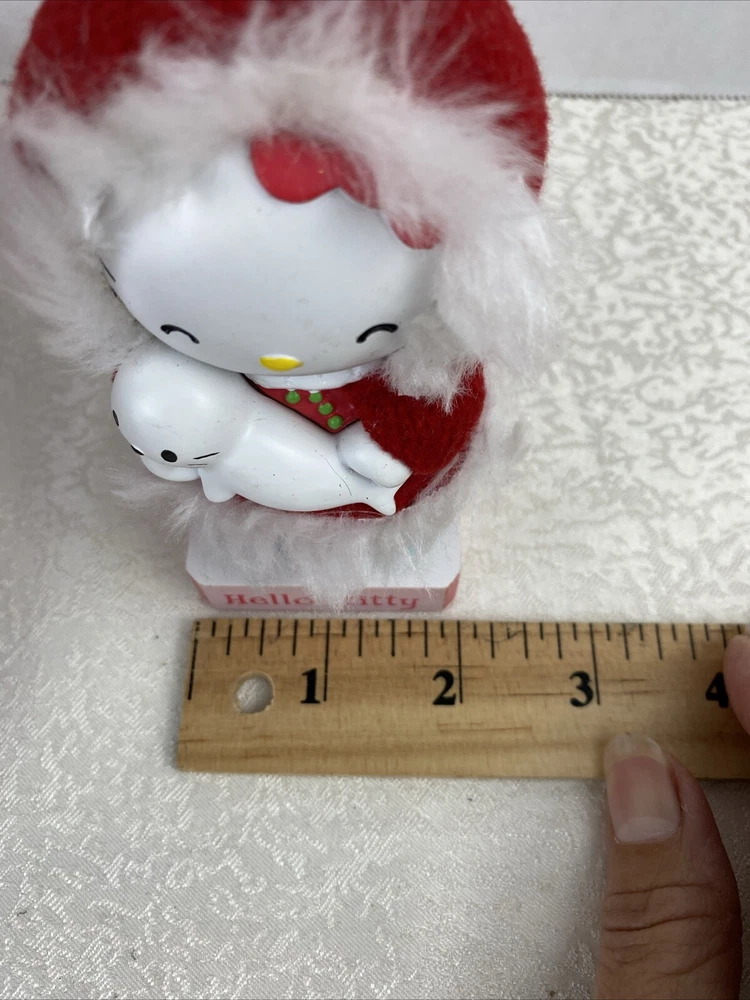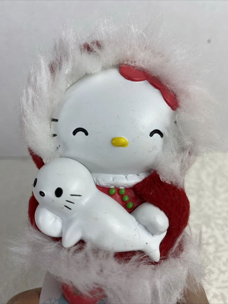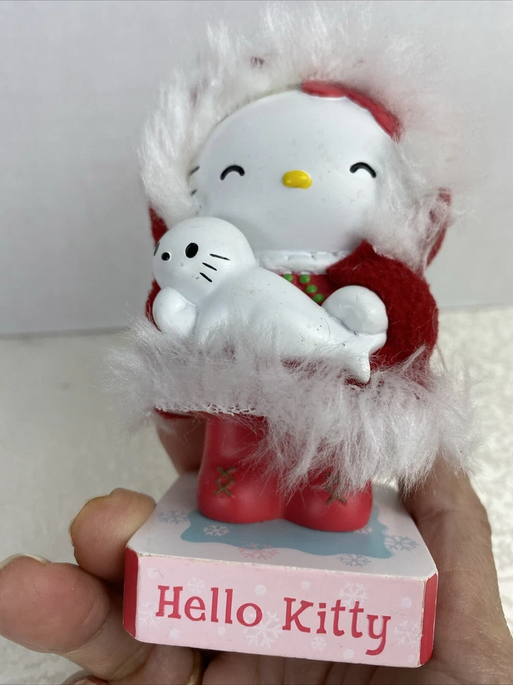 Limited Edition Hello Kitty Bubble Head Red Coat Christmas Decor White Seal Pre-Owned Some Scratches Review Photos For Details And Measurements