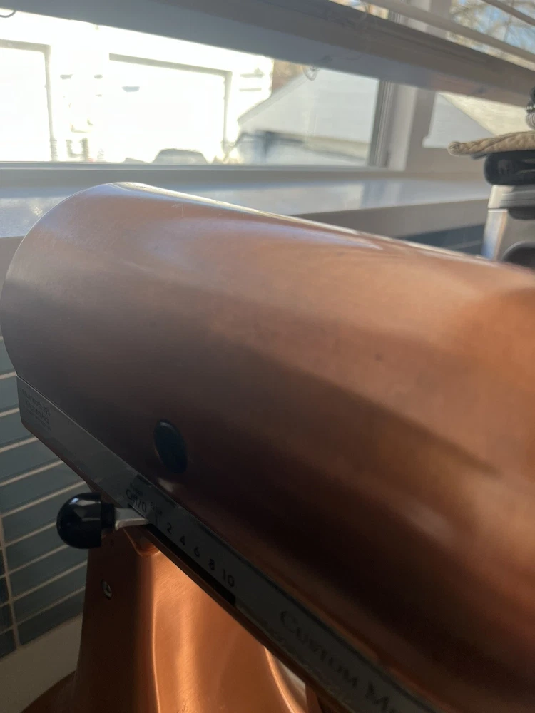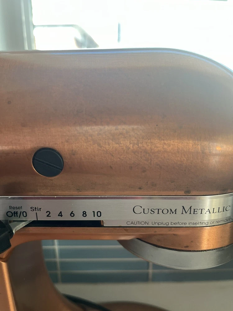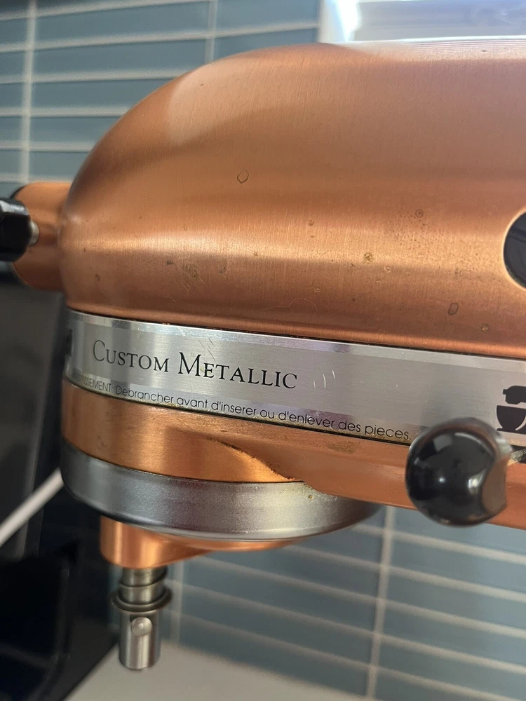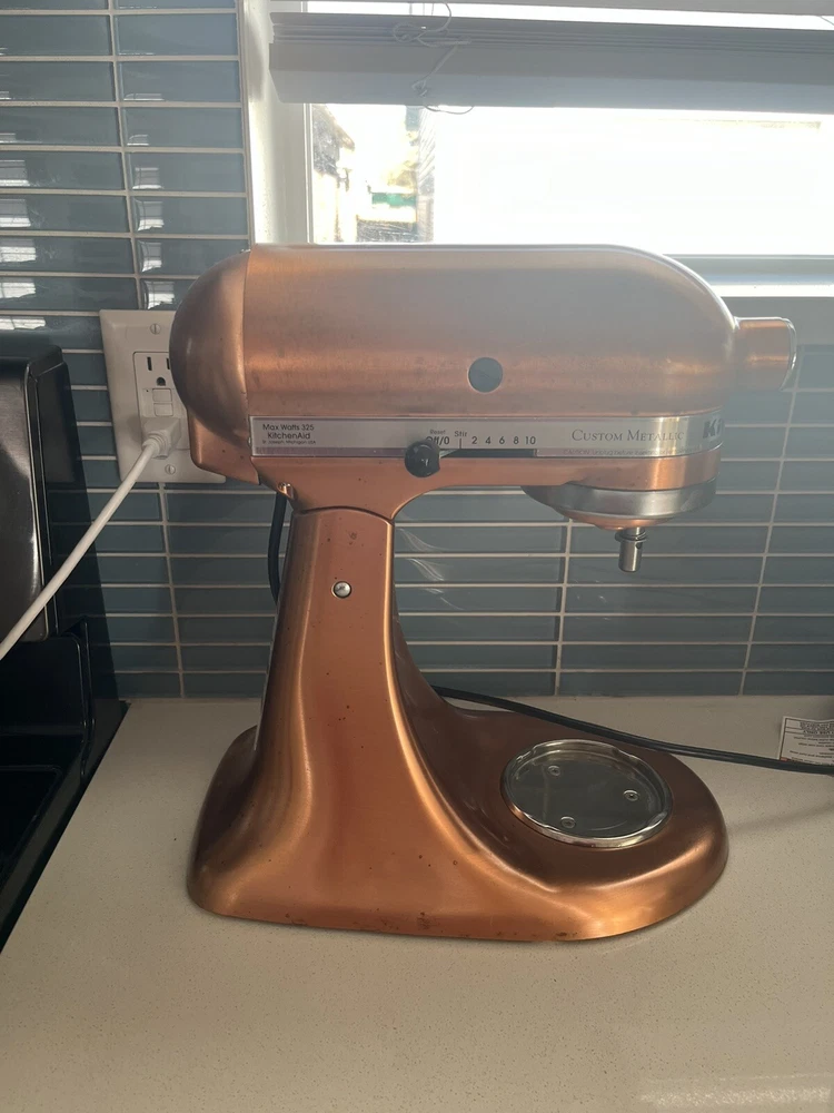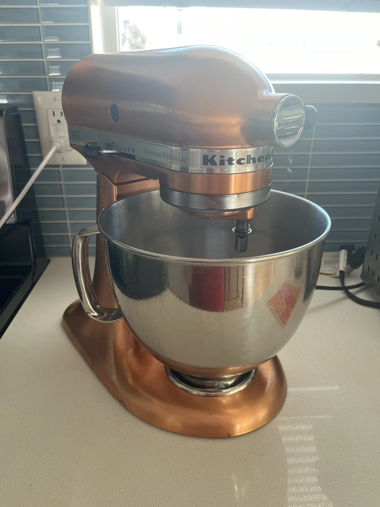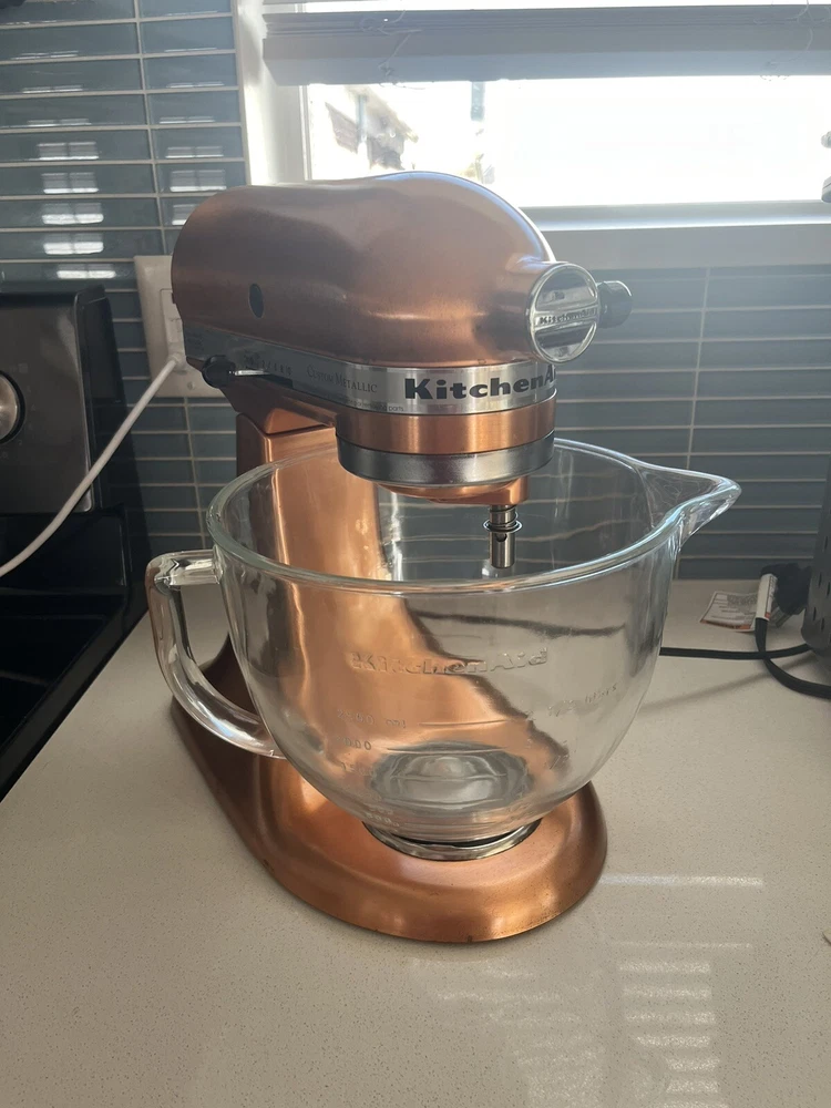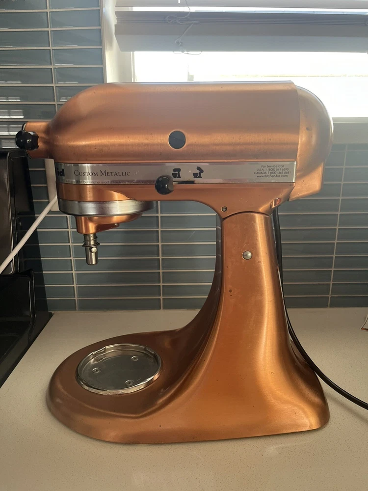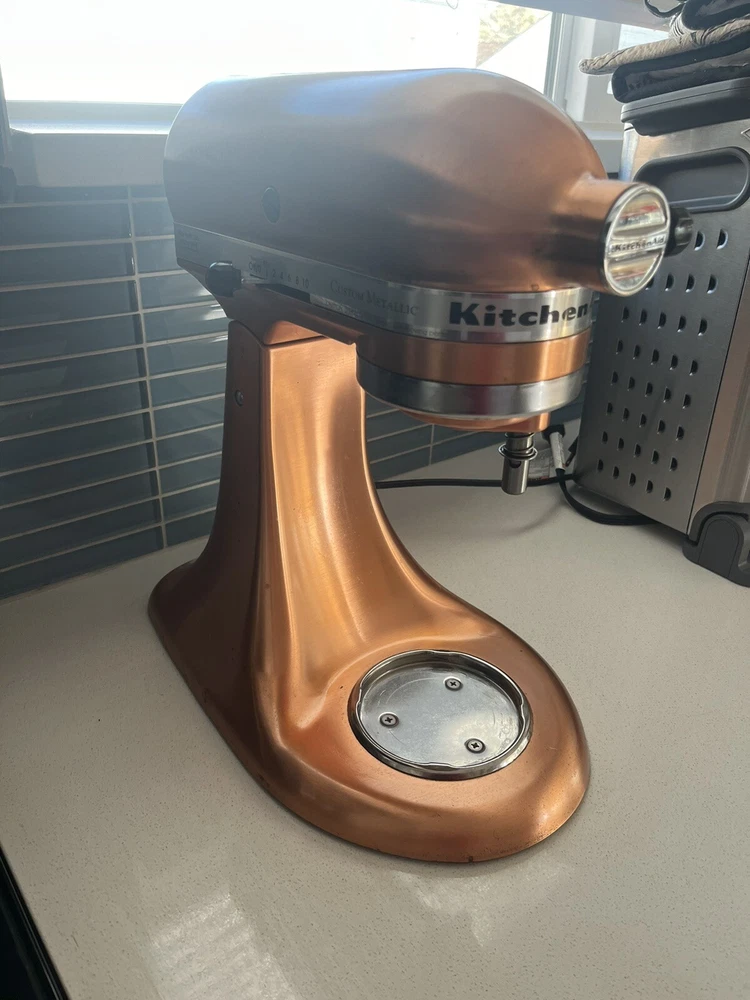 RARE/HTF Artisan Series Copper Stand Mixer by KitchenAid. The mixer does have cosmetic signs of wear/patina. See images before purchasing. Will include your choice of bowl (glass or stainless as pictured) and all accessories. Mixer is in flawless working condition. Please message w questions.