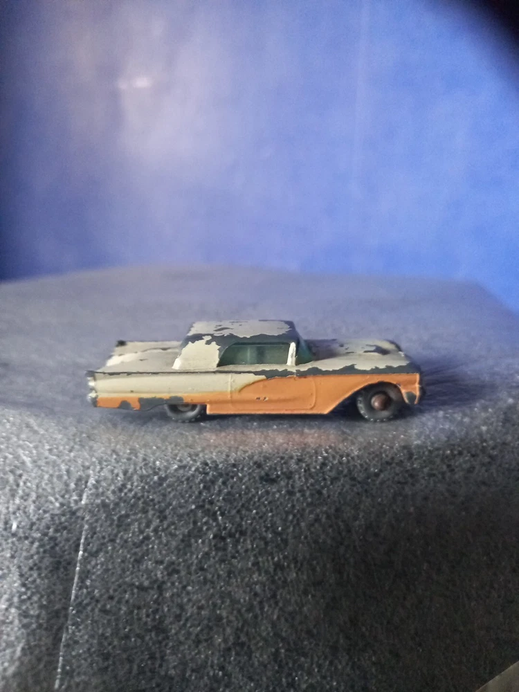 This vintage Matchbox Lesney model car is a rare find for collectors. The model #75A Ford Thunderbird in blue and cream & peach colours was manufactured in the United Kingdom in 1960 as part of the Regular Wheels series. It features a dark blue base. Signs of ply warn condition. The car is made of plastic and metal materials and has been customised for a unique touch. The vehicle is perfect for those who love cars and vintage toys. It is not a domestic product and is not signed. The bundle does not include any additional items, making it a great option for collectors who want to add a unique piece to their collection.