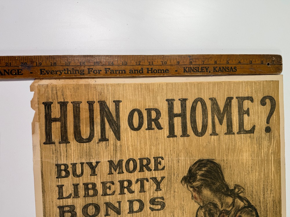 Terrific and original WW1 Liberty Bonds poster. Has some age and wear, see pics for condition. Guaranteed original. Will ship rolled. STORE POLICIES Please look closely at the item photos they are the best indication of condition. Please ask questions BEFORE you purchase an item. All of our items are sold AS-IS. No returns please. All offers considered, first reasonable offer accepted! We reserve the right to adjust the mode of shipping. WE NEVER BREAK OUR LOTS. Thanks! We ship all items within 3 business days . Larger items may take longer. We have been buying and selling in Southwestern Kansas for almost 20 years! Thank you for your purchases and support of our small business!