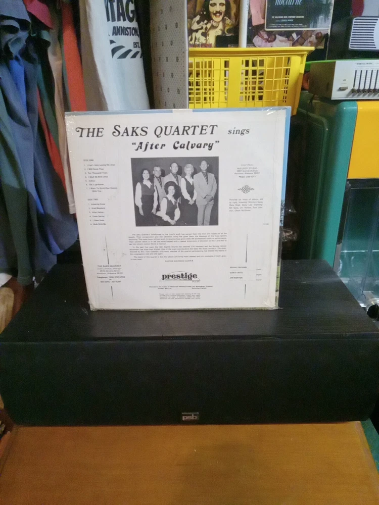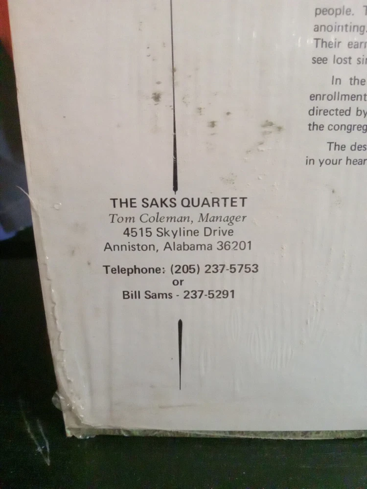 This rare Saks Alabama local Southern gospel LP features the Saks Quartet and includes the hit "After Calvary". The vinyl record is in very good condition and comes in a cardboard sleeve with the original cover. The record is self-released and has a catalog number of 1002. The LP is a live recording from the 1960s and includes gospel and country genres. The record is 12" in size and has a speed of 33 RPM. The artist, The Commanders, and Bob Hemphill have created a unique sound that is perfect for any gospel or Christian music lover. This LP is a must-have for any vinyl record collector and is a great addition to any collection.