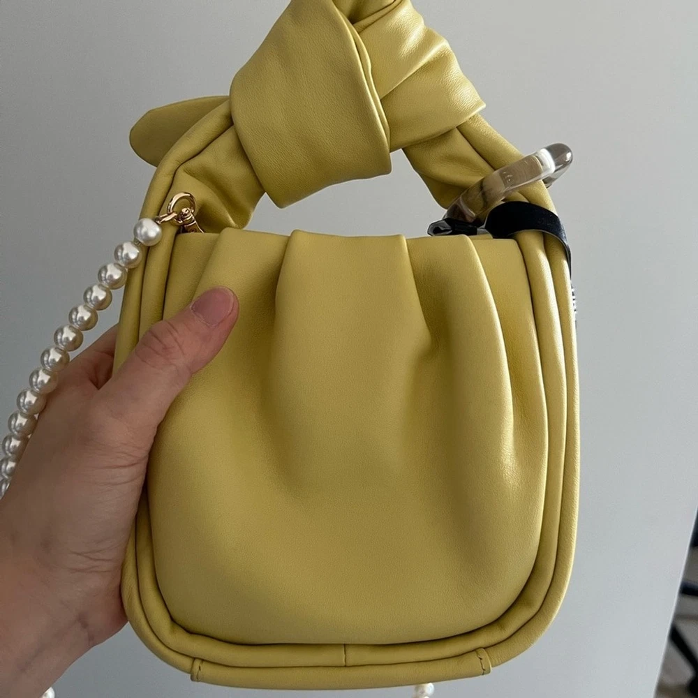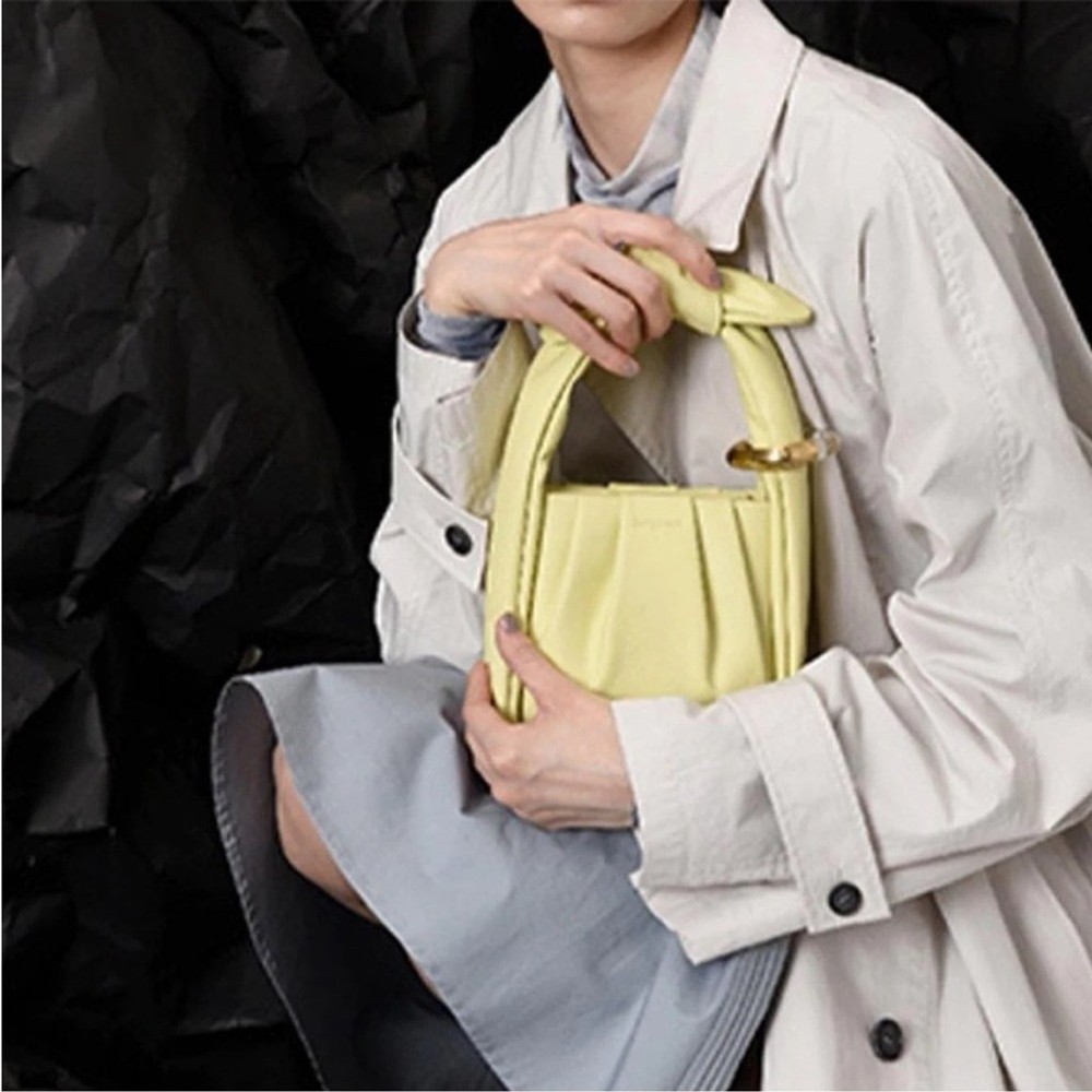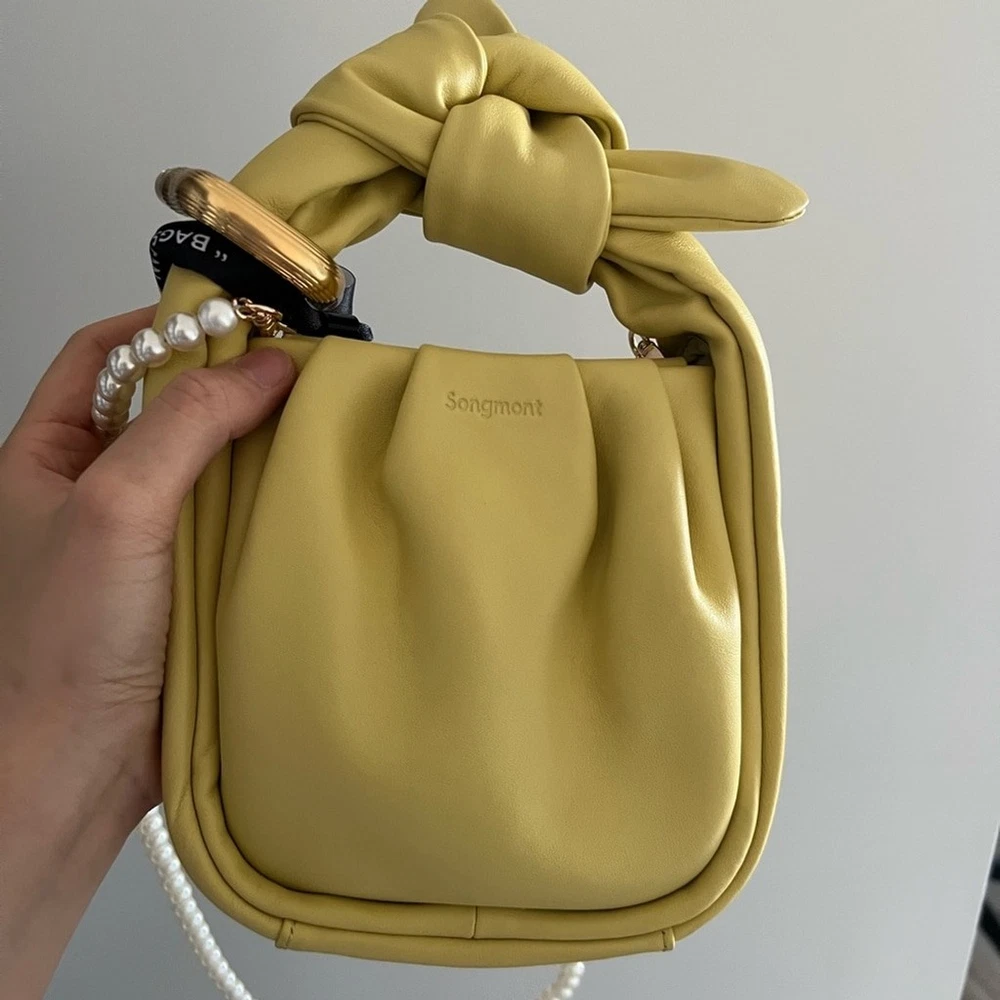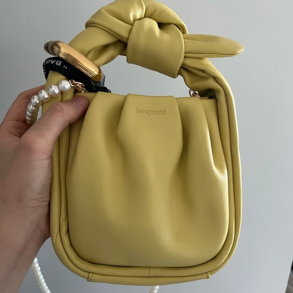 Exterior Color: Light Yellow Style: Top Handle Bag Brand: Songmont Department: Women Exterior Material: Leather