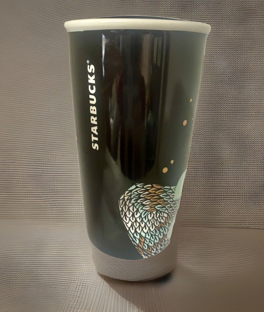 This RARE ceramic Starbucks tumbler features a unique Aqua/ Black/ Bronze Mermaid design, perfect for tea or coffee on-the-go. With a 12 oz capacity, this limited edition tumbler is adorned with the iconic Starbucks mermaid logo, making it a must-have collectible for fans of the brand and coffee & tea enthusiasts alike. Black twist lid Excellent, no chips, cracks or crazing. Lid twists easily. Secure fitting lid. Nice Finish. Local Pick up is available in Murfreesboro TN