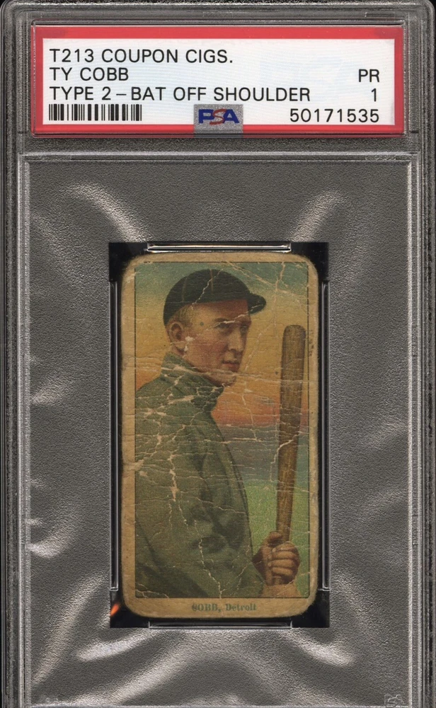 RARE T-213 TY COBB Coupon Cigs Type 2 Bat Off Shoulder PSA PR 1