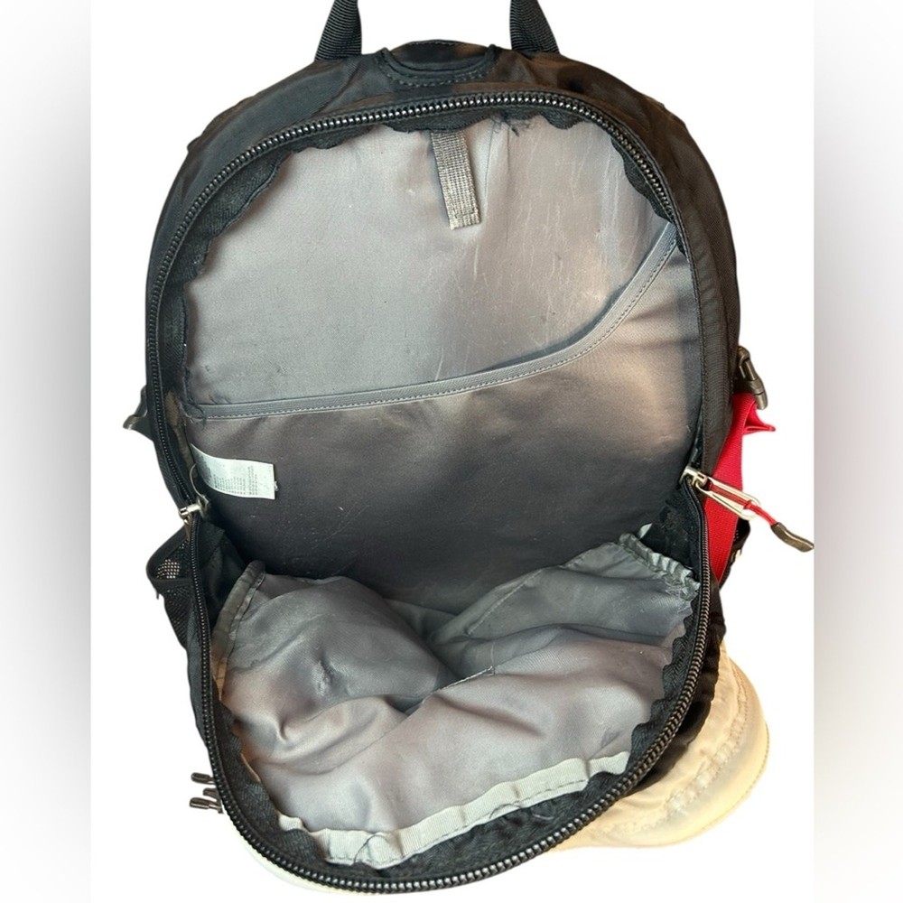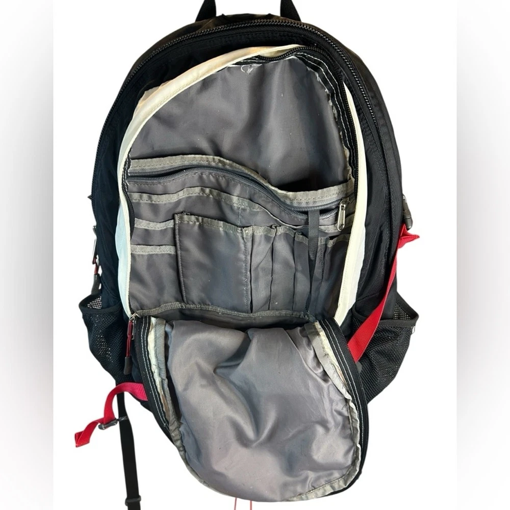 This backpack from The North Face combines a sleek black base with vibrant red accents, making it ideal for outdoor adventures. Its sporty design features technical elements suited for hiking or athletic use, ensuring both style and functionality. Super RARE! The North Face Borealis Sporty Black, Red & White Backpack Pre owned, gently used. The long waist clip strap is broken as photoed, but the short waist clip strap is fine. No other damage or tears. Just a few superficial scuff marks. Next day ship