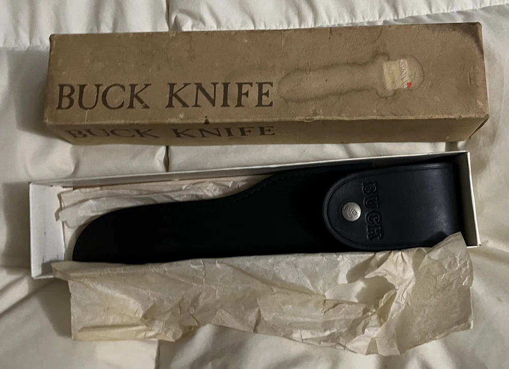 This is a rare vintage Buck USA Model #120 Special fixed blade knife with a stainless steel clip point blade over 5 inches long. It features a half tang, ambidextrous dexterity, and comes with a sheath. The handle is made of phenolic, and it is an original USA-made piece. The knife is brand new in box. Dust included.