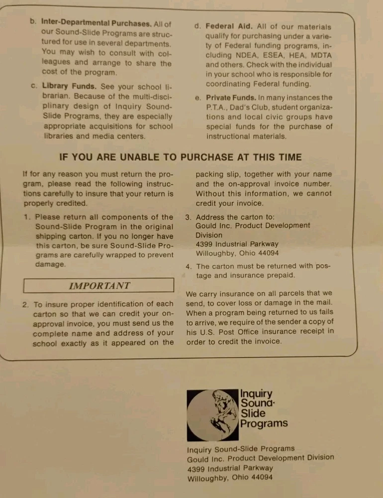 This vintage Gould Bulbs Batteries And Buzzers Inquiry Teacher Slide Progs Forensic is a rare find for any photography enthusiast. 80 educational slides in each round, never opened. 2 lps 2 cassettes. Teacher's manual and other informational pieces. 1973. With its unique design and functionality, this item is perfect for anyone interested in vintage photography, teaching forensics and film slides. Its rarity adds to its value and makes it a sought-after item among collectors. Don't miss out on this opportunity to add a piece of history to your collection.