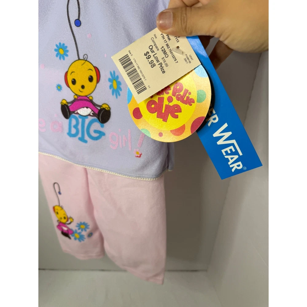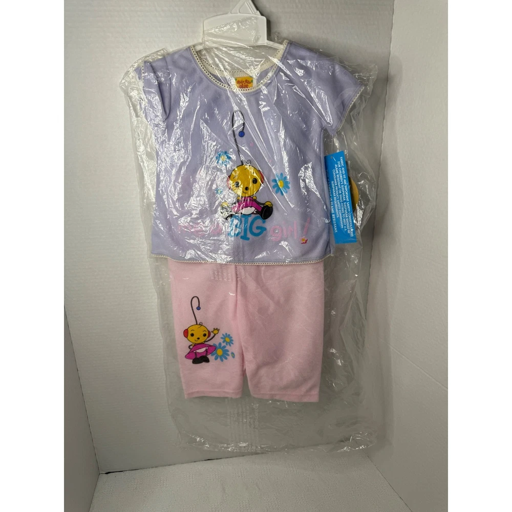 Only one I can find in circulation! New with tags! Own this great piece of kids nostalgia! Adorable Rolie Polie Obie two-piece pajama set featuring a lilac short-sleeve top and pink shorts, adorned with charming cartoon characters and flowers. The 'me a BIG girl!' text on the top adds a playful touch, perfect for your little one's bedtime routine. This cozy sleepwear is ideal for a comfortable night's sleep or a relaxed day at home. Department: Girls Type: Pajama Set Material: Polyester Fabric Type: Velour Closure: Pullover Pattern: Graphic Print Season: Spring, Summer Number of Pieces: 2 Piece Accents: Embroidered Sleeve Length: Short Sleeve Country of Origin: Dominican Republic Garment Care: Machine Washable