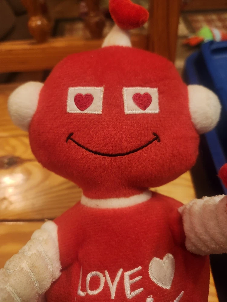 This vintage Collectible Plush Robot is in very good preowned condition, dances and sings the 1975 hit "Love Machine" this Valentine toy stands 15inches tall, would make an excellent addition to any toy collection, does show some wear from age and handling but in overall very good condition, please view and enlarge all photos, thanks