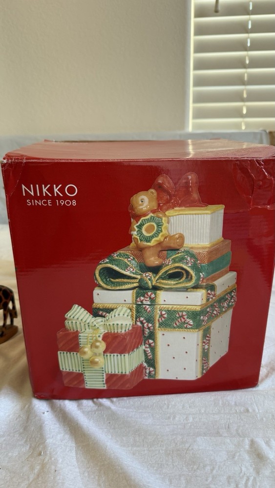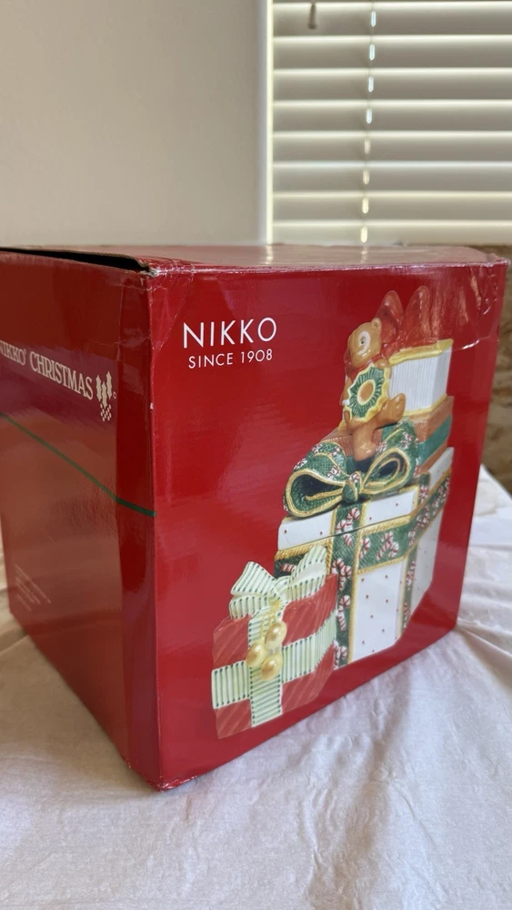 This rare vintage Nikko Christmas ceramic happy holidays cookie jar from Japan is a unique addition to any holiday collectibles collection. The multicolor ceramic material and festive Christmas theme make it a perfect gift or decorative item for the holiday season. The Nikko Christmas brand adds a touch of authenticity and quality to this charming piece, making it a special treasure for collectors or holiday enthusiasts.