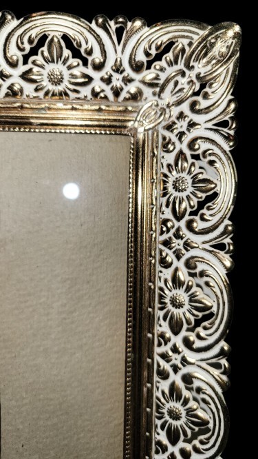 This vintage Victorian 8x10 picture frame with gold leaf accents is a rare and unique collectible item. Made of metal with a metallic finish, this rectangular frame is suitable for displaying one photo. With its intricate design and Victorian style, this original piece from Italy is sure to add a touch of elegance to any home decor. Perfect for those who appreciate antique items and decorative collectibles, this frame is a charming and timeless addition to any collection.