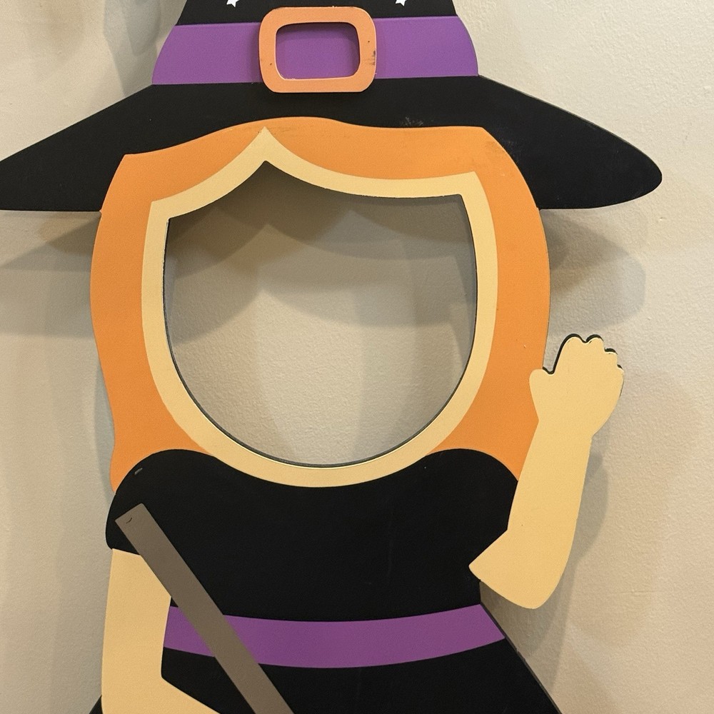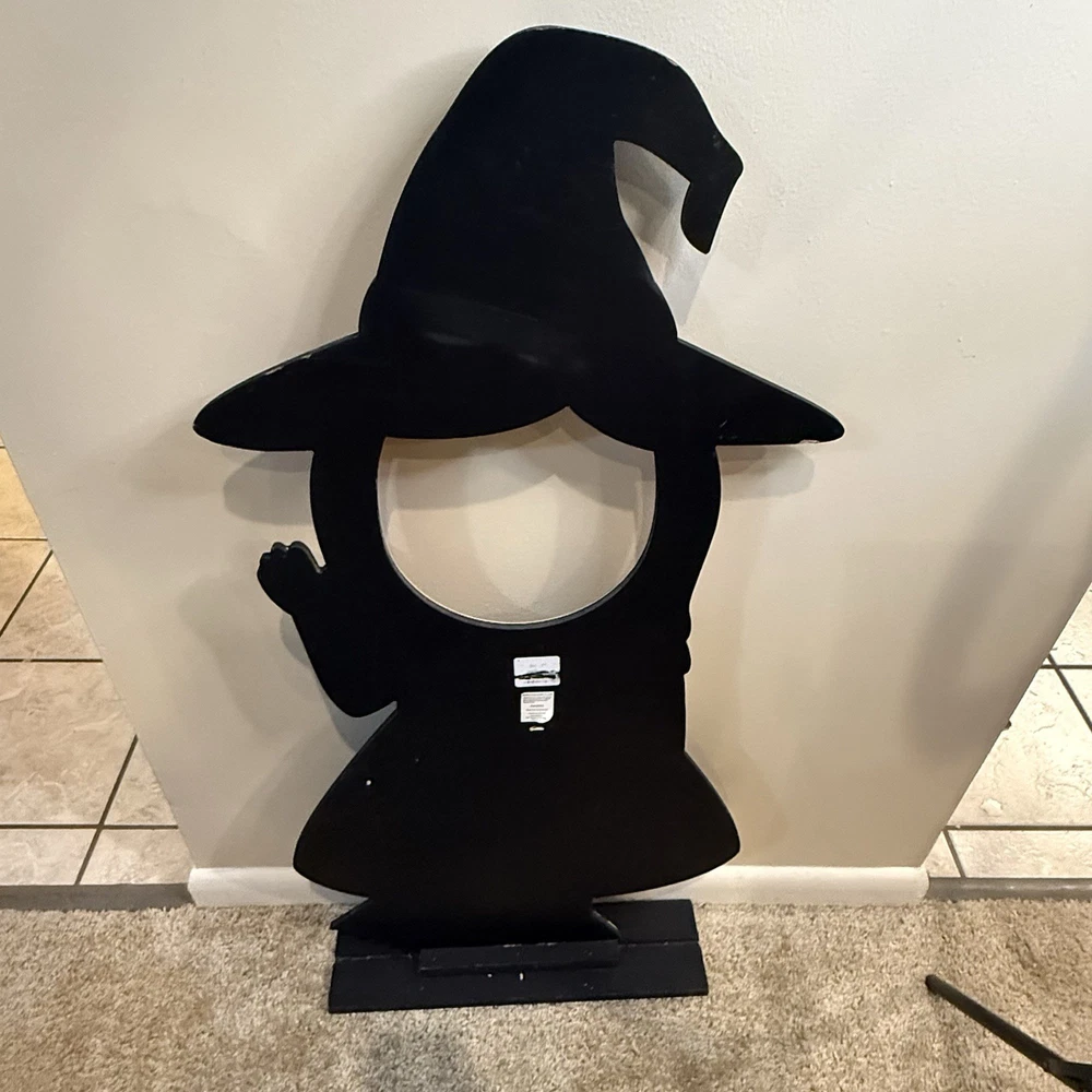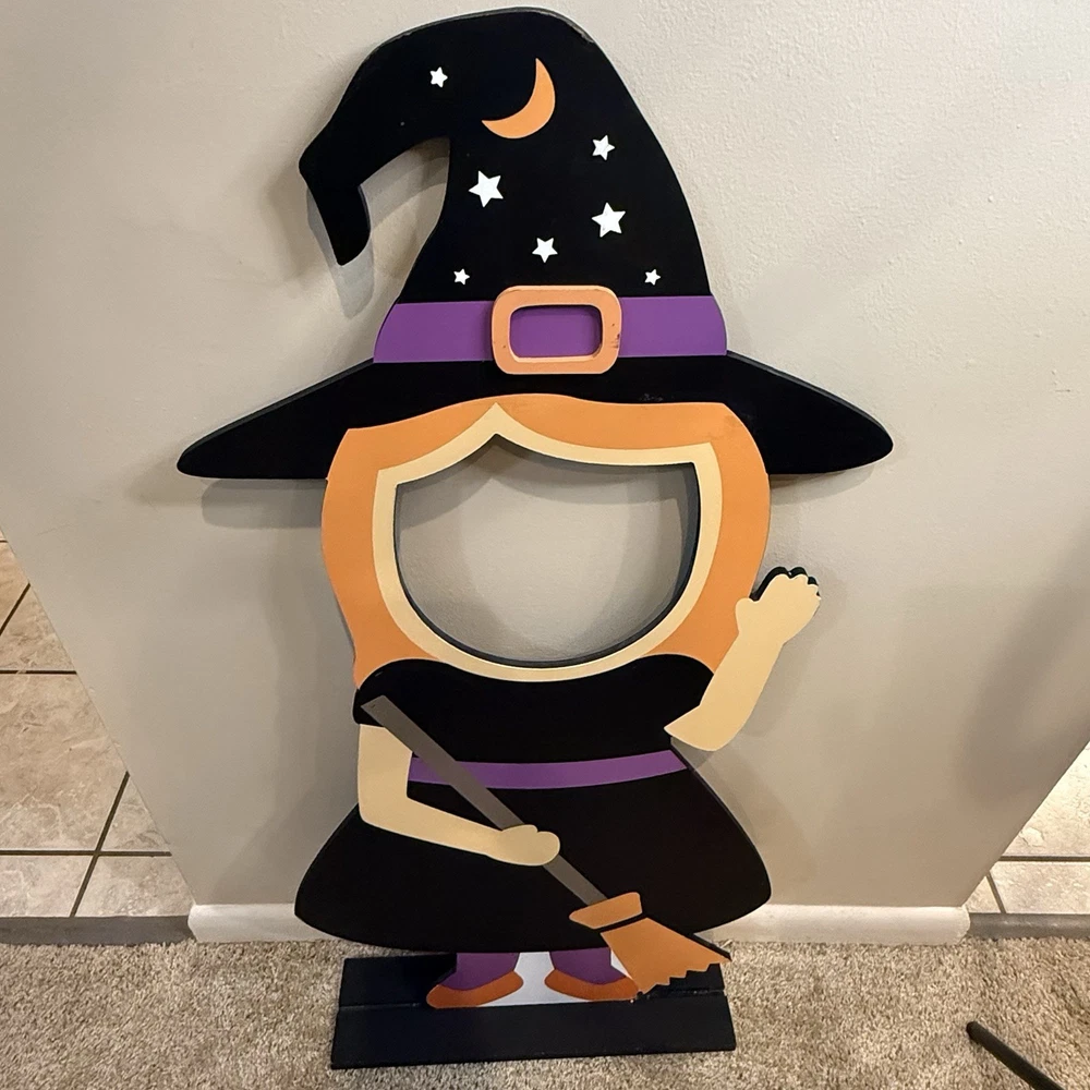 Rare Halloween witch cut out face photo prop. Super cute! Can't find one for sale, can't find any that have sold anytime recently. You can see a lot of these were on TikTok and Instagram. It was sold at TJ Maxx it's 40.5 inches tall and the longest about 18.5 inches wide