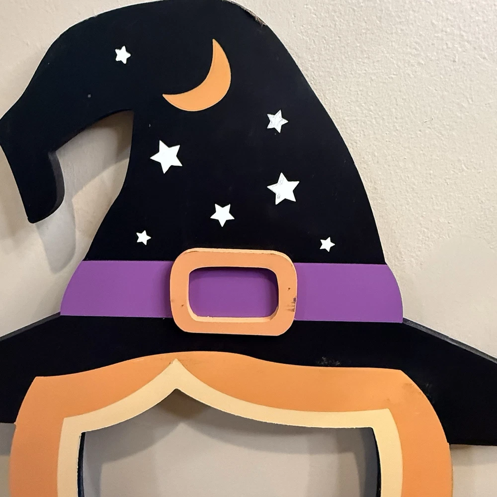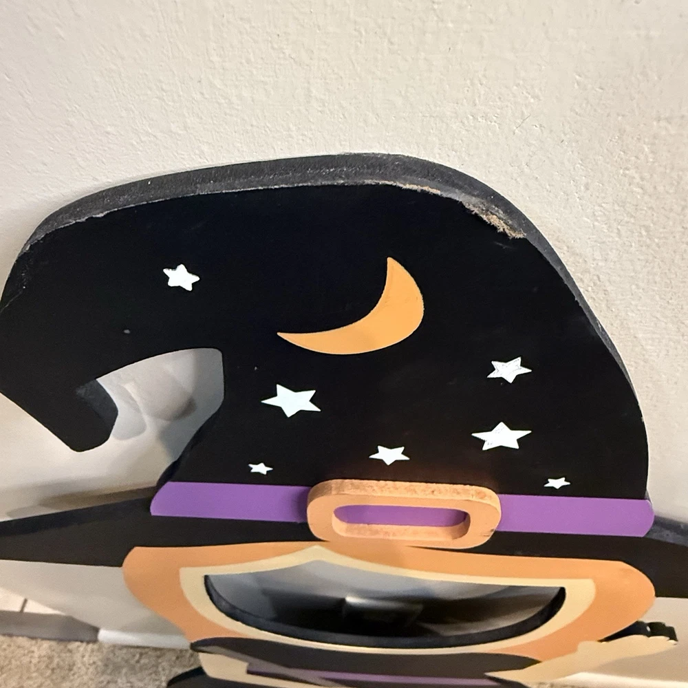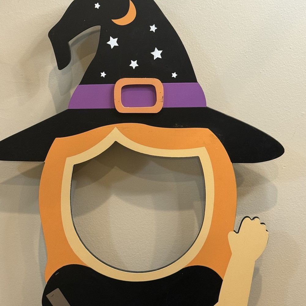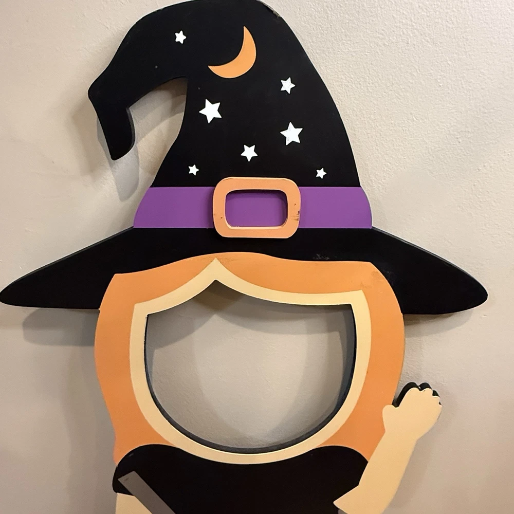 Rare Halloween witch cut out face photo prop. Super cute! Can't find one for sale, can't find any that have sold anytime recently. You can see a lot of these were on TikTok and Instagram. It was sold at TJ Maxx it's 40.5 inches tall and the longest about 18.5 inches wide