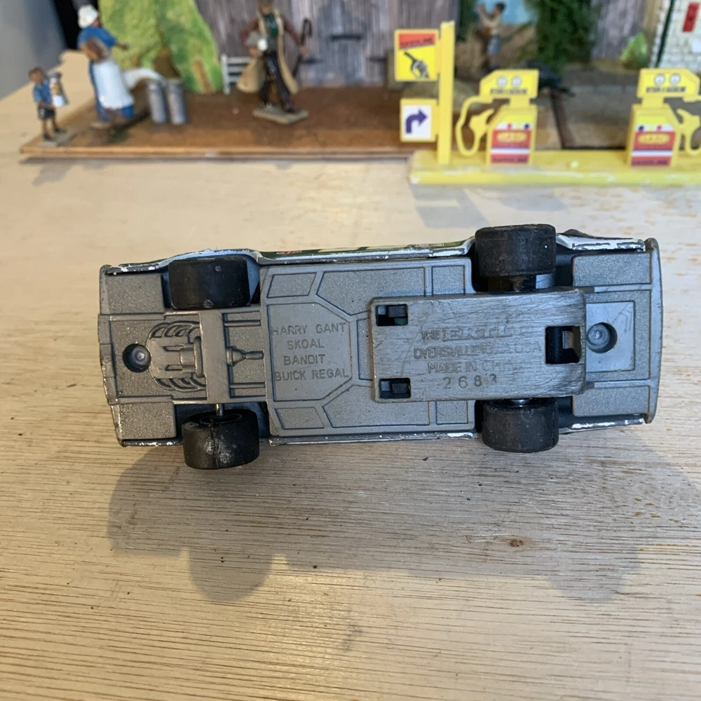 This is a rare vintage Ertl diecast model of a Buick Regal car, specifically the #33 Skoal Bandit 1982 version driven by Harry Gant. The scale of the model is 1/43 and it features a pullback function for added playability. The car is multi-coloured, capturing the authentic design of the original race car. This collectible piece is a great addition for fans of vintage vehicles or those interested in Harry Gant's racing career. Used condition see photos