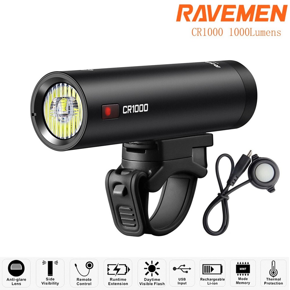 RAVEMEN CR1000+AUB01 Front Bike Light Bicycle Head Lamp Rechargeable Anti-Glare