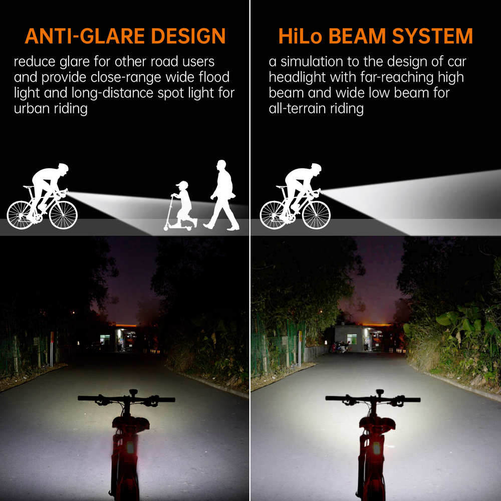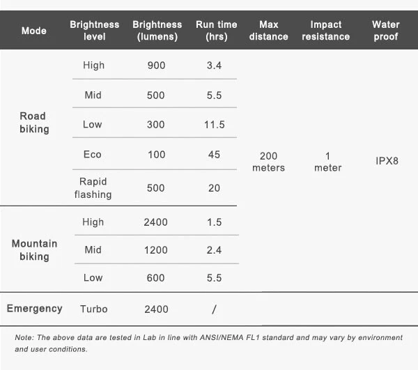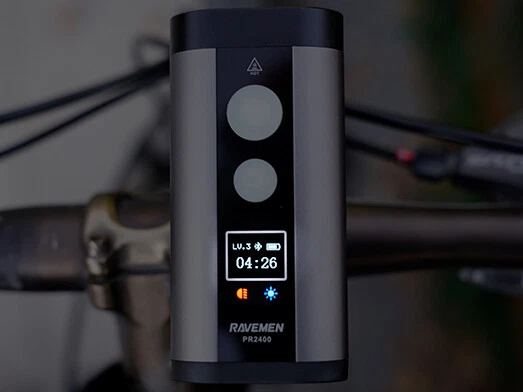 Brand Ravemen Material Aluminum Power Source USB C Rechargeable Water Resistance Level Waterproof Item Weight 282 Grams Mounting Type Handlebar Mount Number of settings 5 Brightness 2400 Lumen Auto Part Position Front International Protection Rating IPX4 Item Package Dimensions L x W x H 7.64 x 4.49 x 1.85 inches Package Weight 0.38 Kilograms Item Dimensions LxWxH 4.13 x 2.01 x 1.42 inches Brand Name Ravemen Warranty Description 2 Years Suggested Users unisex-adult Manufacturer RAVEMEN Included Components font bike light, wireless switch, handlebar mount, silicone shim Sport Type Cycling 【Cutting-edge performance with high output and high-capacity battery】High/low beams optical design with 5 white LEDs and max 2400 lumens output; built-in high-capacity 8000mAh rechargeable Li-ion batteries. 【Anti-glare flood beam for road biking&HiLo beam system for mountain biking】Special optical lens for the central LED to reduce glare for other road users and provide close-range wide floodlight and long-distance spotlight for urban riding. A simulation to the design of automotive headlight with far-reaching high beam and wide low beam for all terrain riding, whether it is for trail or gravel riding. 【OLED runtime display and mode indicators】Display the remaining runtime of each brightness level instantly in an intuitive way and help to select the ideal brightness level for different riding situations. 【Type-C input port and standard USB output port】Type-C reversible connector to charge your light easily and no need to flip around for the correct orientation.USB output port to use the light as a powerbank and to charge your digital devices when in need. 【Aircraft-grade aluminum body and IPX8 waterproof design】Solid and light-weight aluminum case with multi fins for better heat-dissipation performance.IPX8 waterproof design for heavy rain and muddy road riding. 【Battery runtime extension】Extend the runtime of the battery by connecting with external power source for emergency lighting when the light is in low power, no worry to be left in darkness. 【Wireless remote switch】Turn on/off the light and change brightness levels safely without releasing the grip; single click to activate max output for signaling or emergency lighting. Product Features 1. Anti - glare optical lens for road biking mode to reduce glare for other road users and provide close - range wide flood light and long - distance spot light for urban riding 2. HiLo beam system for mountain biking mode , a simulation to the design of automotive headlight with far - reaching high beam and wide low beam for all - terrain riding 3. OLED real - time display to show the remaining runtime of each brightness level 4. Wireless remote switch with instant max output and brightness adjustment buttons to control the light easily 5. Extending battery runtime with external power source 6. Type - C input port for easy charging and USB output port to charge your portable digital devices 7. Intelligent memory circuit remembers the last used brightness level and mode when turned on again 8. Intelligent thermal management circuit to prevent overheat of LEDs 9. Quick release design for easily slide in and out and compatible with 31.8mm and 35mm round handlebars Tech Specifications LED :5* high - efficiency white LEDs Battery :8000mAh/3.6V rechargeable Lithium - ion battery Dimensions ( Headlight ):105mm( L )*51m m( W )*36mm( H ) Weight ( Headlight ):282g Materials : The front and main body is made by aluminum with Mil Type Ill Hard Coat Anodizing ; the rear part and the handlebar mount are made by durable plastic Design and specifications are subject to change without notice . The package includes: 1*Ravemen PR2 4 00 Light 1*S nap-on Bracket 1* Wirel ess Remote Controller 1*Charging cable 1*manual On 18/06/2024 at 21:40:47 AEST, seller added the following information: On Jan 23, 2025 at 21:02:13 PST, seller added the following information: