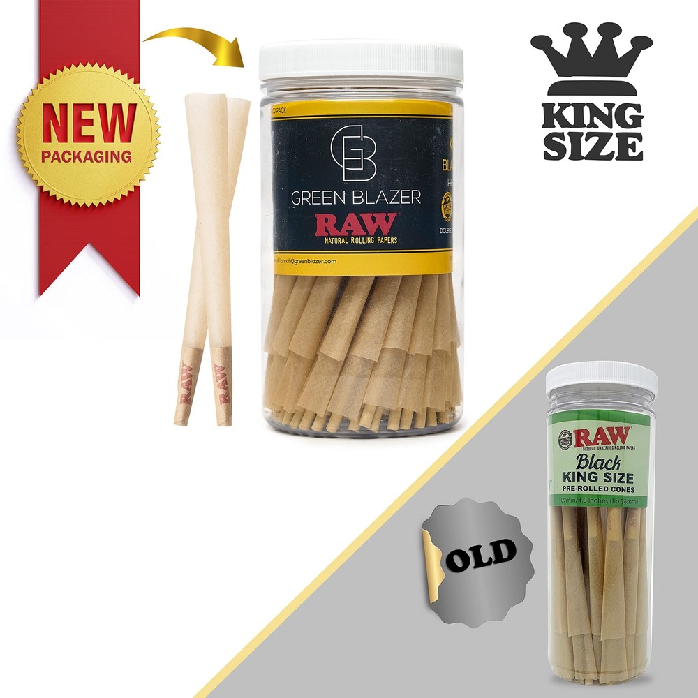 RAW Cones Black King Size: 100 Pack Product Overview Cone Size: King Size - 110mm/4.33in Size: 100 Pack + Tube Featured Refinements: Raw Cone Country/Region of Manufacture: Indonesia Brand: RAW EAN: 0856881008426 UPC: 856881008426 MPN: 856881008426 100% GREEN BLAZER SATISFACTION GUARANTEE: The Green Blazer is an authorized Raw distributor in partnership with the RAW brand. We will fully refund any customer not 100% satisfied with their purchase no questions asked. What do you have to lose? Add to your cart now!