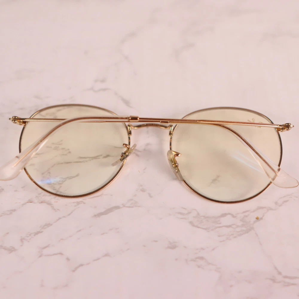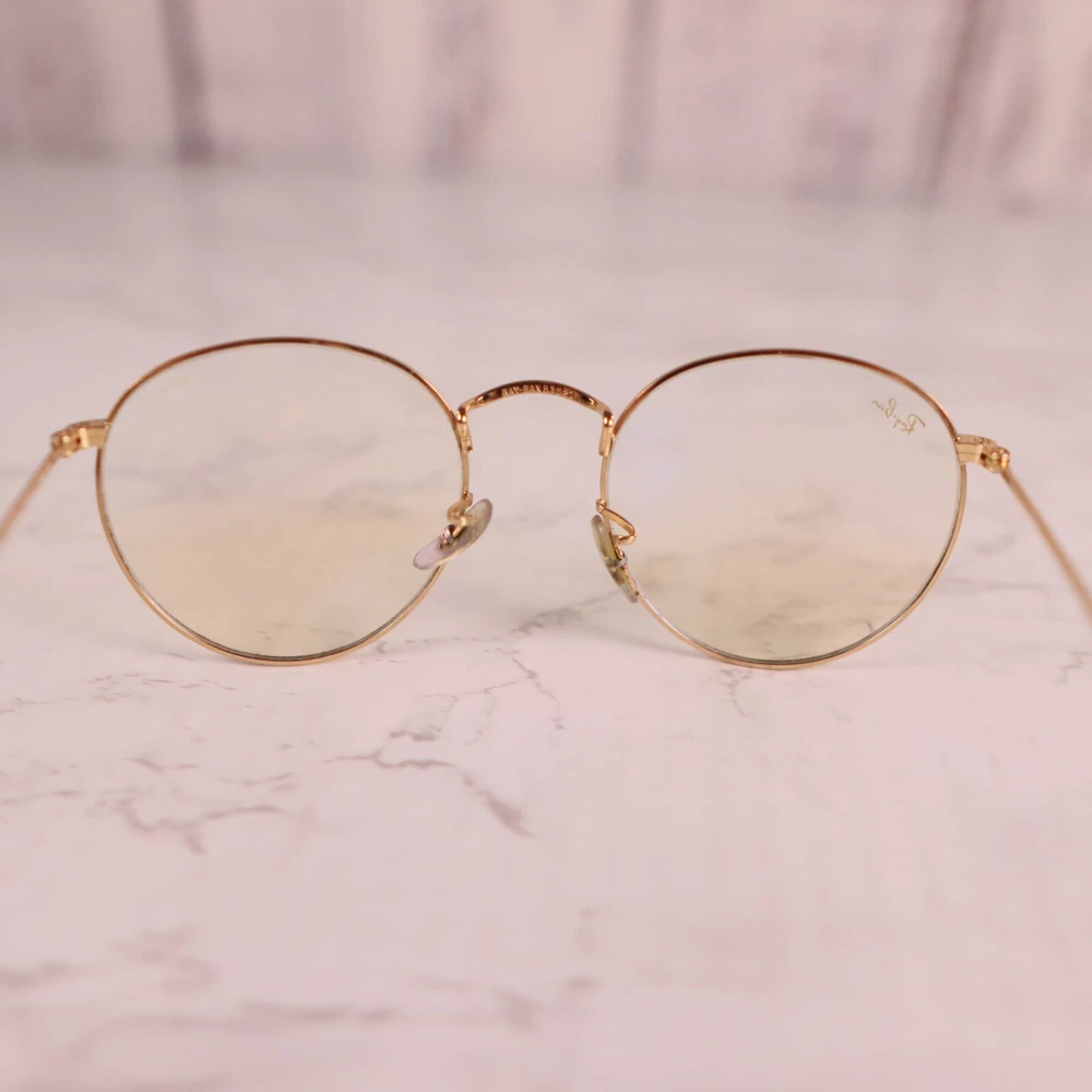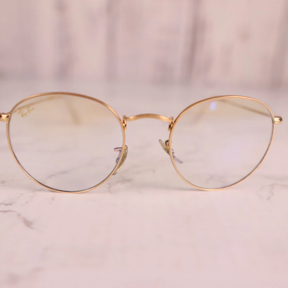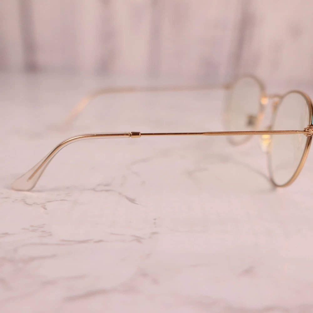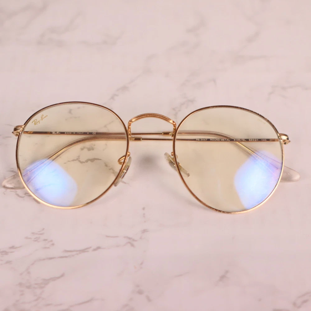 Department: Unisex Adults Seller Notes: “Frame only, the lens are scuffed/scratched and will need replaced.” Lens Material: Glass Vintage: No Brand: Ray-Ban Lens Color: Clear Model: Ray Ban Evolve Theme: Designer Frame Material: Metal Type: Sunglasses Frame Color: Gold Temple Length: 145 mm Style: Round Country/Region of Manufacture: Italy MPN: 3447 9196/BL Pattern: Solid