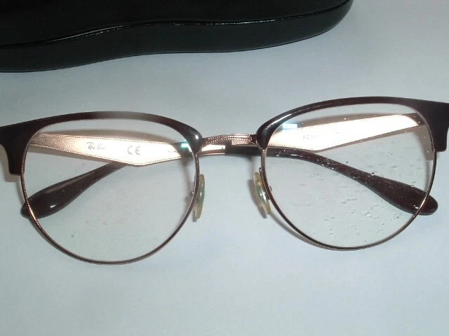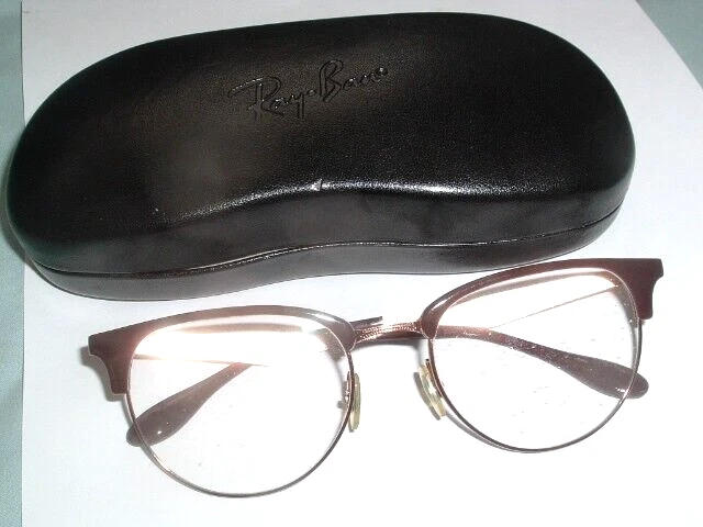 A pair of mens or womens Ray Ban burgandy and copper glasses and black leather case. The stems have slight wear and lenses need to be replaced. Seller will pay postage and postal insurance.