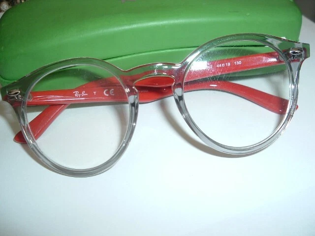 RAY-BAN JUNIOR RB 1594 3812 CLEAR RED AUTHENTIC FRAMES EYEGLASSES 44-19 and CASE