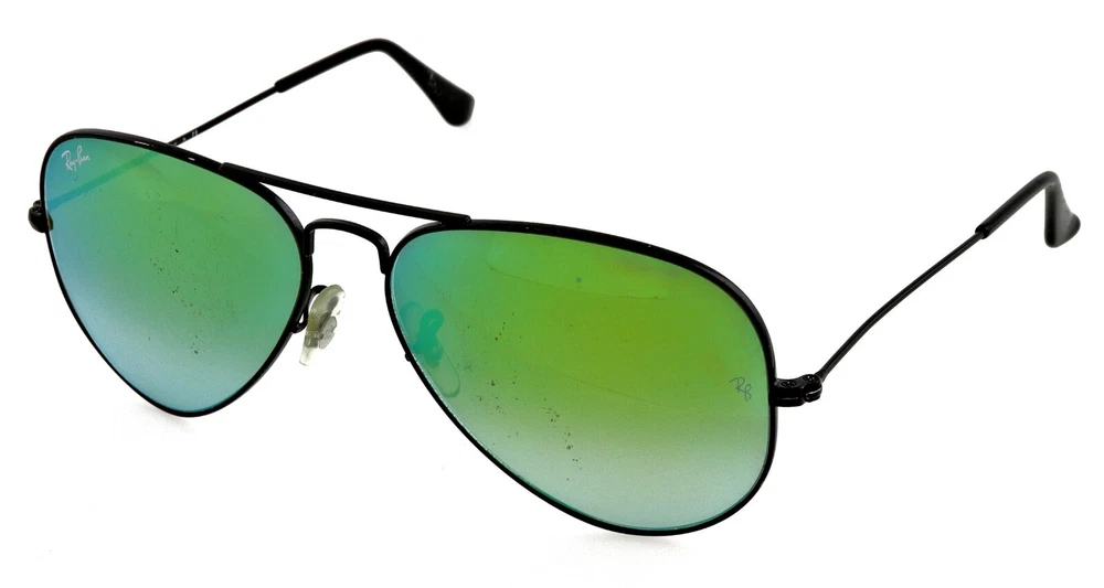 RAY-BAN RB3025 002/4J Black Green mirror 58mm 58-14-135 Made in Italy note some lens speckling. not very noticeable in person