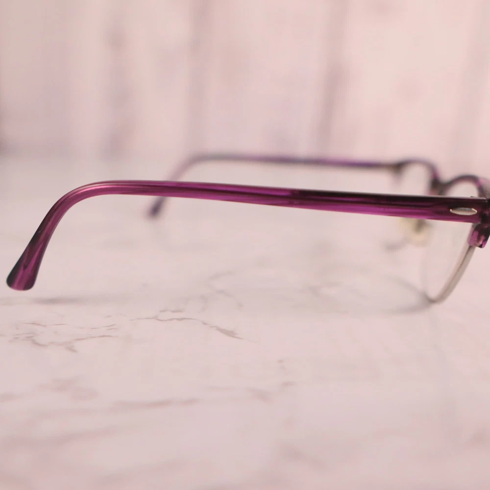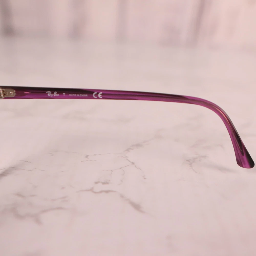 Bridge Width: 21 mm Brand: Ray-Ban Temple Length: 140 mm Department: Unisex Adults Frame Color: Purple Seller Notes: “Frame only, the lens are scuffed/scratched and will need replaced.” Lens Socket Width: 49 mm Type: Eyeglasses