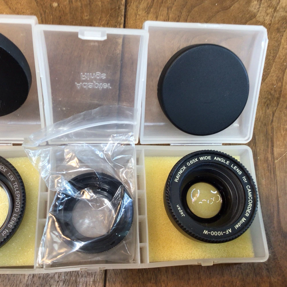The RAYNOX Camcorder Lens Set includes a .65x wide-angle lens and a 1.5x telephoto lens, designed for AF-1000-W and AF-1000-T models. The lenses offer manual focus control and are constructed with plastic exteriors. The brand Raynox is known for producing high-quality lens attachments for improved versatility in photography and videography. The set provides the ability to capture wider scenes with the wide-angle lens or zoom in closer with the telephoto lens, enhancing the creative possibilities for camcorder users. Please look at the pictures closely, as this is the item that you will receive.