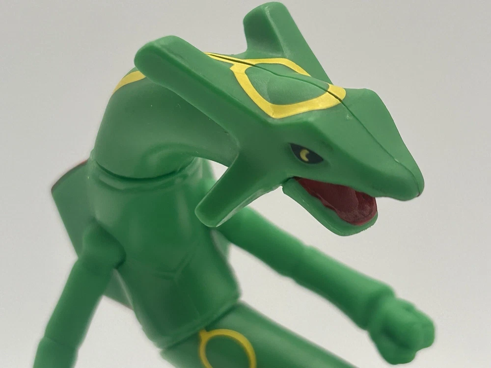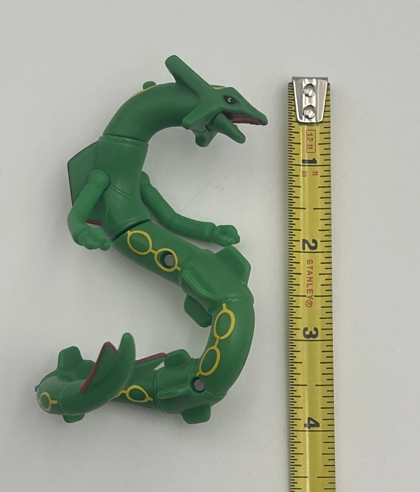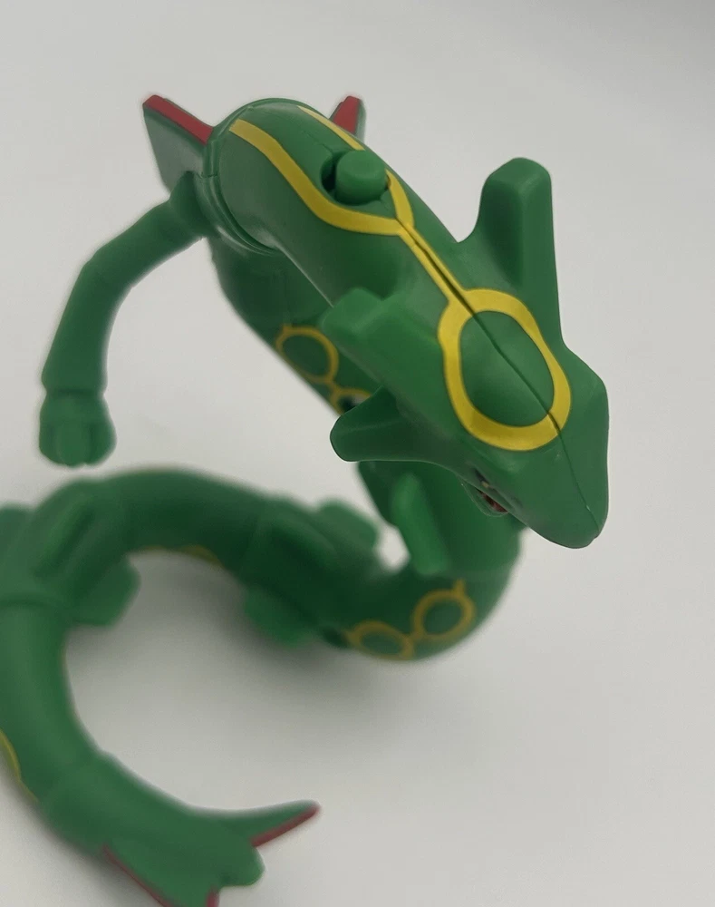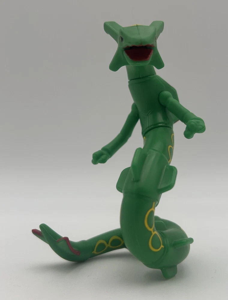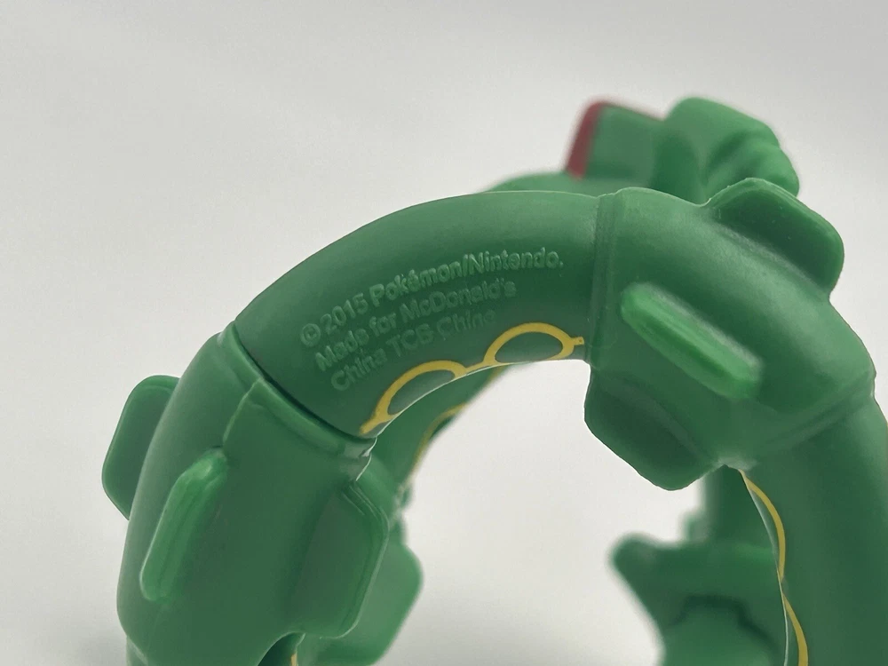 This RAYQUAZA Pokemon figure stands at 5 inches tall and is a 2015 McDonald's Happy Meal toy collectible. With its emerald color and detailed design, this stuffed animal is perfect for any Pokemon fan or collector. Made by McDonald's, this vintage toy is a must-have for anyone who loves the popular franchise. Bring back memories of childhood with this rare find. Don't miss out on the chance to add this unique piece to your collection.