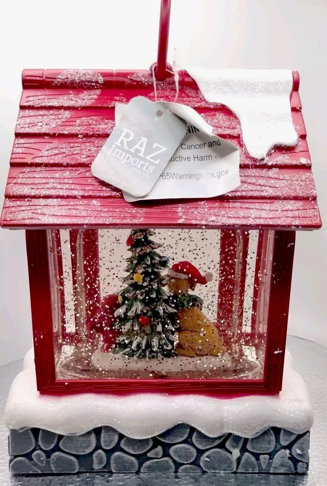 RAZ Imports Snowman Lighted Dog House Water Lantern Musical Snow Globe NEW in box. This is an open box new item for the pictures. Beautiful for the holidays. 10" tall by 6.25" long by 5" wide We use our pictures as part of our condition and description on each item. This item may need to be polished or cleaned as we try to keep everything how we found the item. Combined shipping on orders is always available! *Props are not included, such as jewelry boxes, earring holders, ECT... **Please follow the Biba Dushi Treasures store so that you are notified of new items!!!! ***No returns on International Sales!!! International Shipping will ONLY be through Global Shipping!!!!