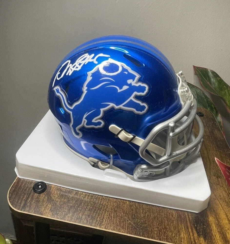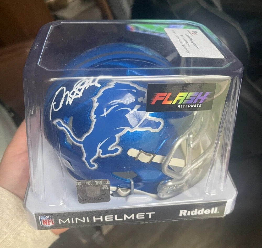 This alternate Flash mini-helmet is signed by David Montgomery of the Detroit Lions.. The helmet is perfect for display and showcases your love for the sport of football. This item is a must-have for any fan of the Detroit Lions or David Montgomery