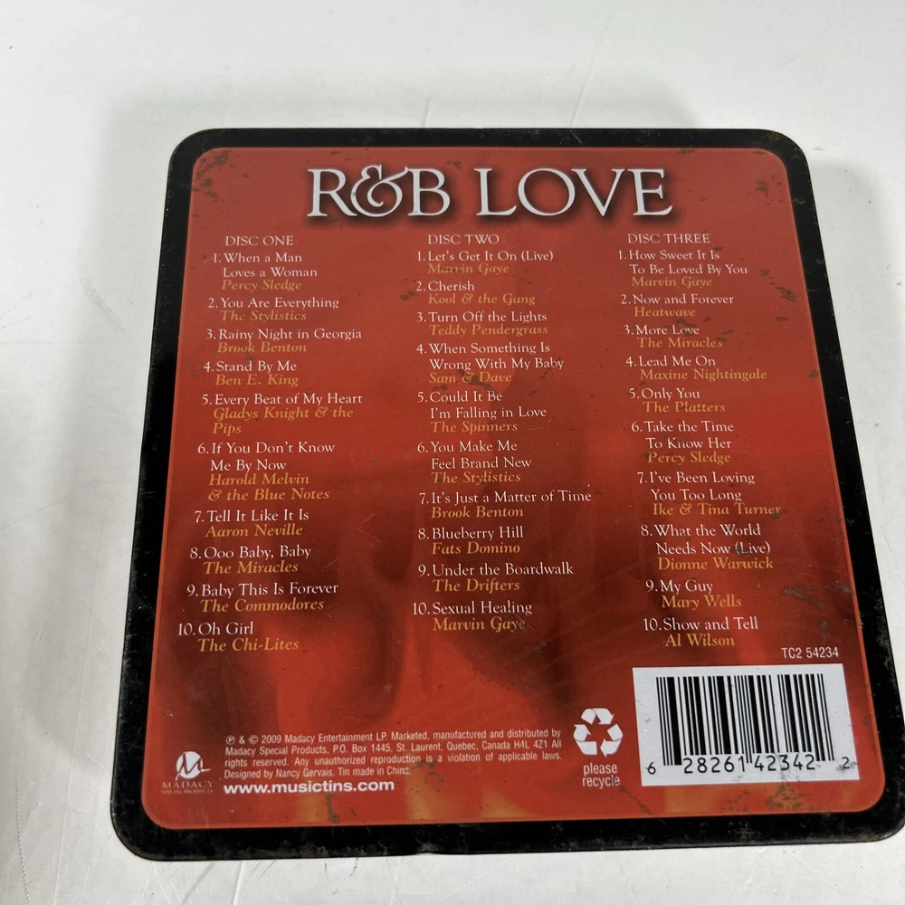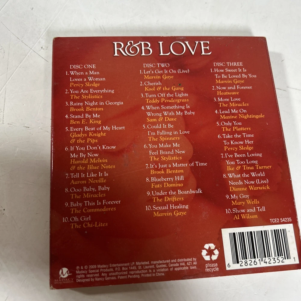 gtin13:0628261423422UPC:0628261423422Inlay Condition:Very Good (VG)CD Grading:Very Good (VG)Record Label:MadacyArtist:Various ArtistsFormat:CDRelease Year:2009Run Time:110 min.Brand:UnbrandedRelease Title:R&B Love [Madacy]Genre:Motown, R&B & SoulStyle:MotownMPN:Does not applyCase Condition:Very Good (VG)