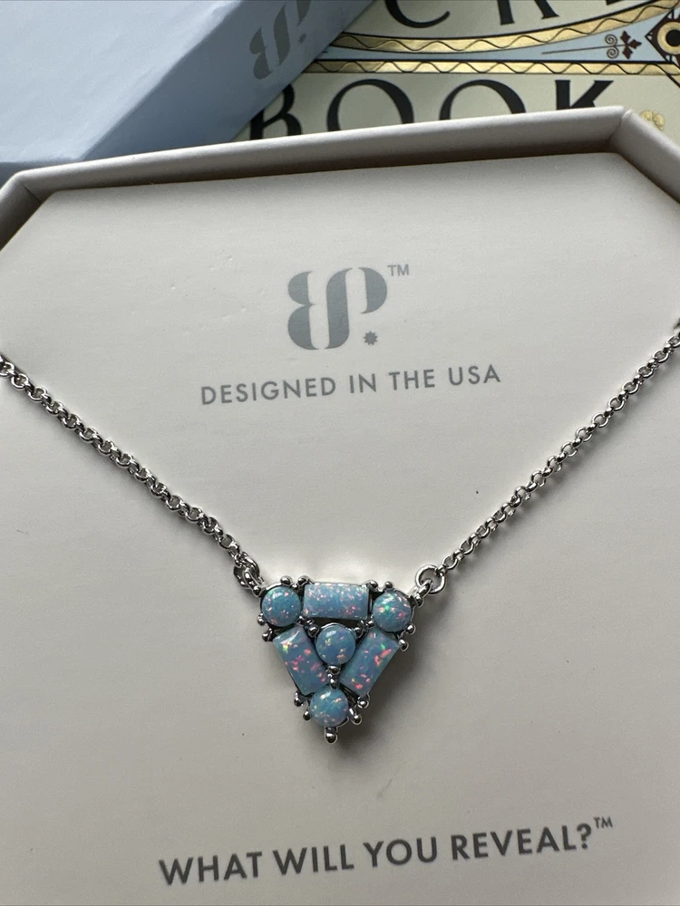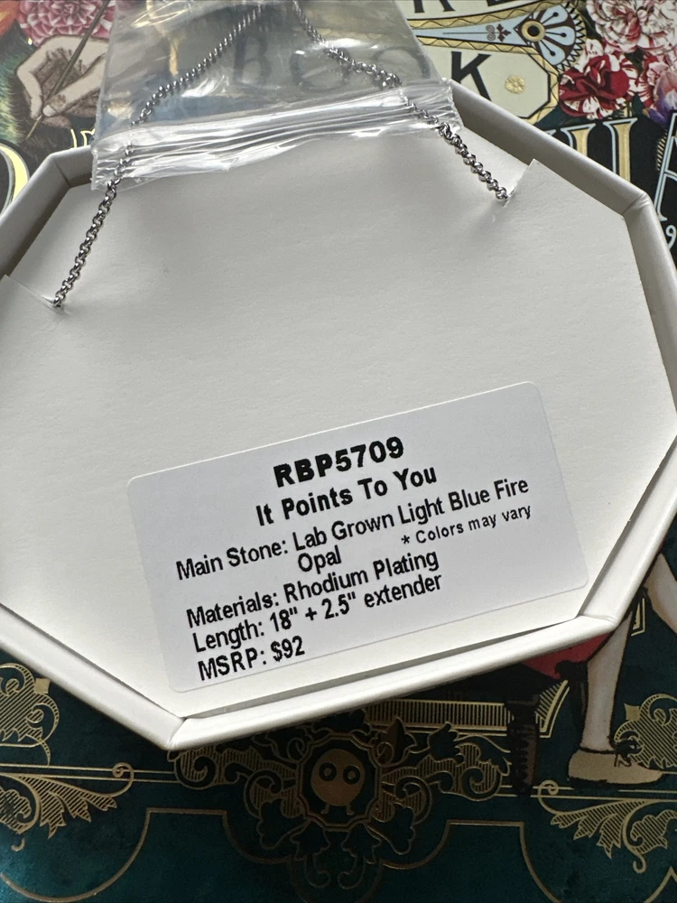 RBP5709 It Points To You Lab Grown Light Blue Fire Opal on Rhodium. Condition is New with tags. Shipped with USPS Ground Advantage.