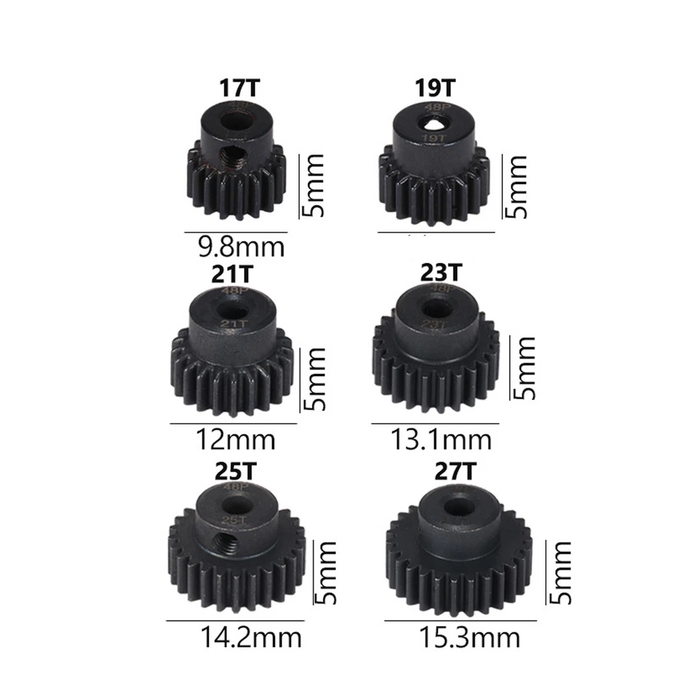 This Is 48P Pinion Gear Set (17T 19T 21T 23T 25T 27T) . Those Gear Fits Most 1/10 Car & Truck Use 48 Pitch Only) Fits 3.175mm Shaft Size , 6 X Pinion Gear With Screws , Thanks
