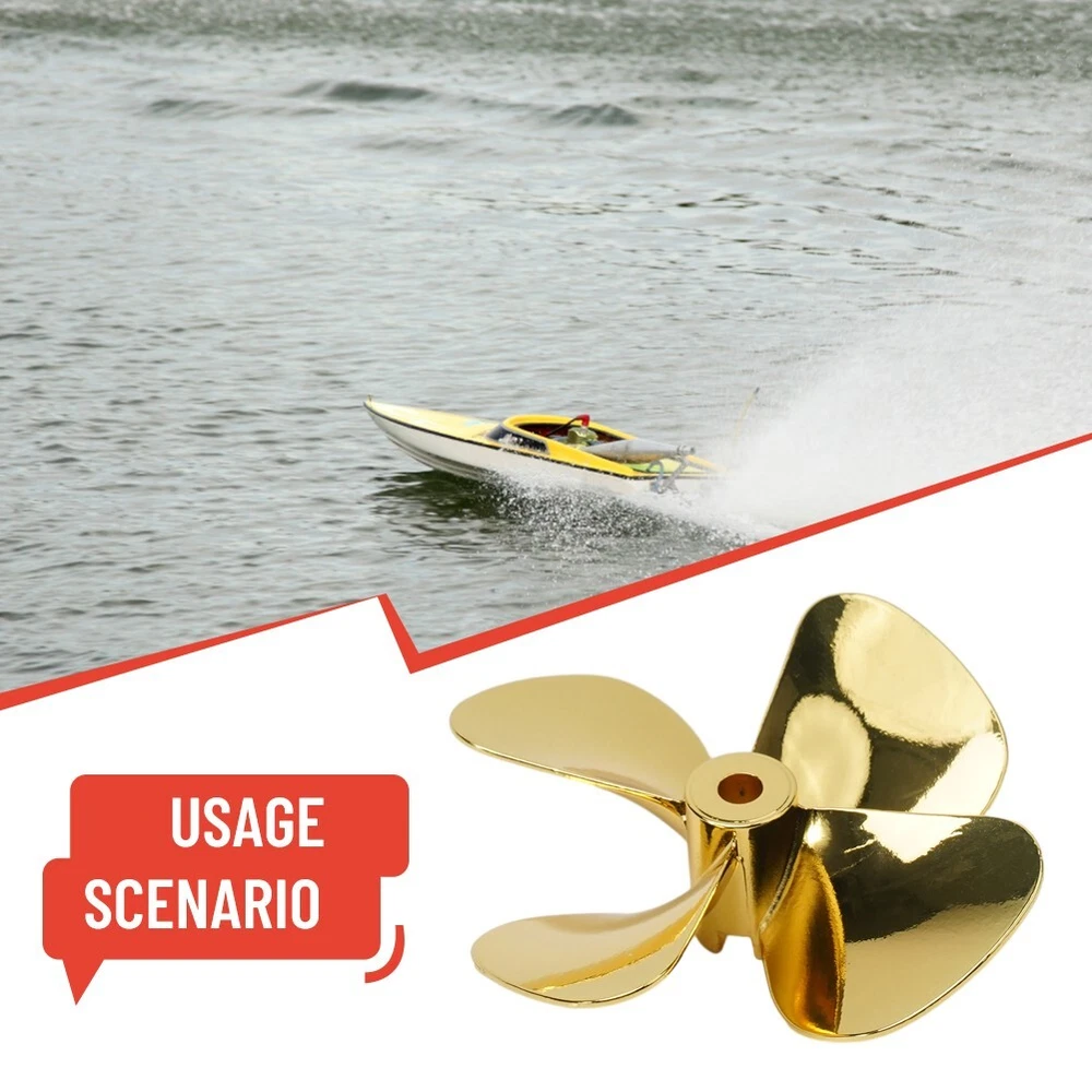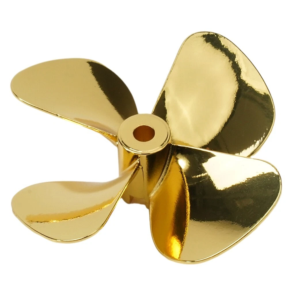 RC Boat Model 55mm/60mm Metal Propeller 4 Blades 4mm Shaft For RC Marine ROV Au DESCRIPTION Features: * brand new and high quality. *These 4-blades metal propellers are for RC boat, heavy boat, tug boat, fishing bait boat, wood boat, Marine, ROV etc. *This propeller is made of Zinc Alloy, with gold color plate. it is made by casting,it is strong and . *It works with propeller drive dogs.( Not include in listing ) *There are two sizes propellers optional,left-hand and right-hand available: D55mm:Rotating Diameter 55mm, Hub height: 17mm D60mm:Rotating Diameter 60mm, Hub Height: 17mm Tips: Right-Hand(RH):which rotates clockwise as viewed from the stern when in forward gear Left-Hand(LH):which rotates counter clockwise as viewed from the stern when in forward gear Please note: Affected by manufacturing process,the shaft hole diameter is about 4.15mm, It is not tightly matched with 4mm shaft. so it is not suitable for speed boat. and you have to adjust the balance of the propeller through the propeller drive dog and fixing nut. Specification: *Material: Zinc Alloy *Made by Casting, With gold color plate *Shaft hole diameter: 4.15mm, Fit 4mm diameter drive shaft *Rotating Diameter: 55mm/60mm (optional) *Type: Right-Hand / Left-Hand Propeller (optional) Package Contents: 1* Propeller Prop Note: 1. The real color of the item may be slightly different from the pictures shown on website caused by many factors such as brightness of your monitor and light brightness. 2. Please allow slight manual measurement deviation for the data. POLICES Shipping Payment WARRANTY We only ship to confirmed ebay Order addresses. Please comfirm that your Order address is in line with your shipping address. Please kindly note that the c ombined shipping is not provided because the shipping fee is calculated by weight. Also, the each additional item means exactly the the same color and size. It takes about 7 -15 working days to US; about 10-30 working days to other countries. Transit time may be a little delayed because of the bad weather and customs inspection . If you do not receive your item within 30 working days since payment finished, please contact us immediately for further assistance. Payment must be completed within 5 days. If you have any problems about payment, please contact us via ebay message. We strive for 100% customer satisfaction! Positive Feedback is very important to us. If you have any questions, p lease feel free to contact us via "Ask seller a question" . We will reply your email within 24 working hours.