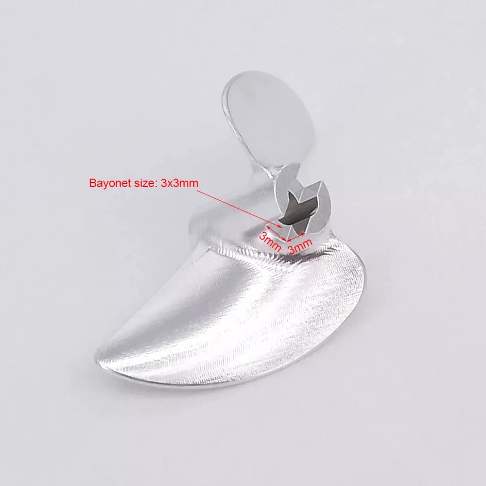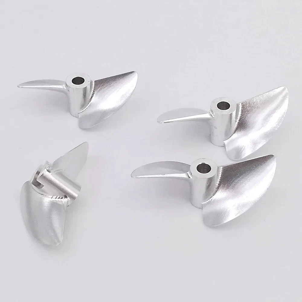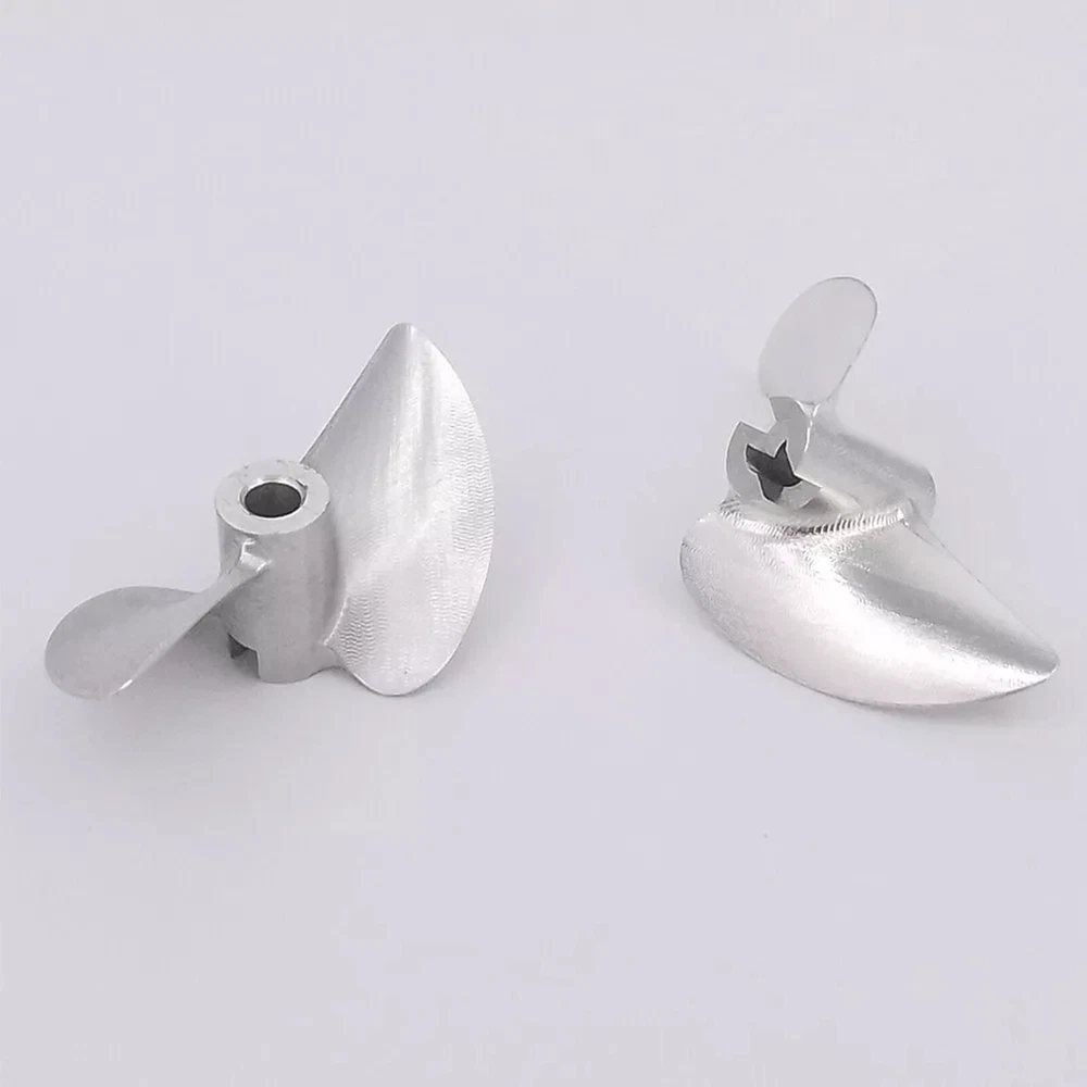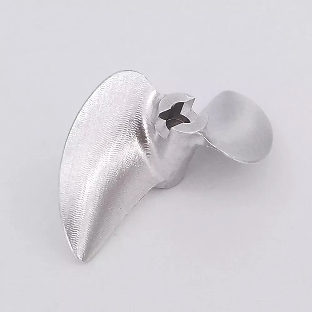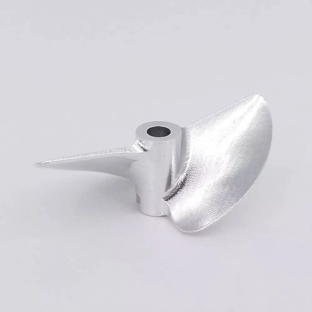 RC Boat Propeller 4mm 38mm 40mm 42mm 2-blades Aluminum Prop P1.4 for RC Racing Boat Description There propeller Suit for brush-less RC speed boat, RC racing boat upgrade spare part. Made of aluminum alloy, made by CNC.It is balanced,sharp and hard. There are two sizes available, please choose the correct size for your boat before purchasing. Tips Right-Hand(RH): which rotates clockwise as viewed from the stern when in forward gear Left-Hand(LH): which rotates counter clockwise as viewed from the stern when in forward gear ? Specification & Features * Material: aluminum alloy( 7075 ) * Hub hole diameter: 4mm, Fit 4mm shaft * Propellers diameter: 38mm/39mm/40mm/41mm/42mm/43mm/44mm/45mm optional * Propellers types: Left-hand, right-hand optional * Bayonet size:3mmx3mm * Pitch ratio: 1.4 ? Item Contains 1 Piece of CNC aluminum RC boat propeller for 4mm shaft( Diameter and propeller types optional )