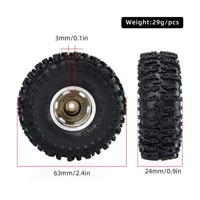 You may also like Non Woven Fabric Storage Box DrawerClothes Storage Sundry Storage Box 23.36 USD 46.72 USD Free shipping 50% off RC Car DIY Modified Upgrade Metal Kit For UDI 1601 1602 SG1603 1604 Drift RC Car 15.1 USD 30.2 USD 2.98 USD 50% off RC Cars Interior Back Baffle Tailgate Modification for Trx-4 Lima Bronco 101.23 USD 202.45 USD Free shipping 50% off Green Silicone Watch Strap Sports Smartwatch Band for Samsung Galaxy Watch7 14.06 USD 28.12 USD Free shipping 50% off 1x Front Gearbox CC2012 Gear Box Parts For TAMIYA 1/10 4WD G500 58675 64.51 USD 129.01 USD Free shipping 50% off Nylon Transfer Gearbox Dust Cover For Capo JKMAX V1.0 V2.0 2020 RC Racing Car 17.6 USD 35.19 USD Free shipping 50% off For Airtag Anti-lost Device Bike Seat Mount Case for SWAT Power Expert/Mimic Pro 8.82 USD 17.63 USD Free shipping 50% off All-in-one Protective Case Watch Case Accessories for Xiaomi Watch S4 Sport 5.65 USD 11.29 USD Free shipping 50% off For Tamiya Man 1:14 RC Truck Metal Gearbox Bevel Gear / Synchronizer Sets 23.85 USD 47.7 USD Free shipping 50% off Keycap Mechanical Keyboard ABS Translucent Keycap OEM R4 for Mechanical Keyboard 7.38 USD 14.76 USD Free shipping 50% off For Intel Trusted PlatForm TPM2.0 Security Module Security Processor 14(14-1)pin 22.64 USD 45.28 USD Free shipping 50% off Power on button Volume keys Power button Outer keys for Samsung S21FE Phone 6.73 USD 13.46 USD Free shipping 50% off Product Description RC Climbing Car 1.0” Aluminum Cyclone Wheels+jc Tires for SCX24/FMS24/TRX4M-W187 Features: l Solid and durable, long service life l High quality for professional use l Multiple colors for you choose to decorate your device l Replacement for the original damaged, old and non-working one Specifications : l Material: Aluminum Alloy + Rubber l Colors (Optio nal): Black, Red, Brown l Applicable Model: for SCX24/FMS24/TRX4M-W187 l Quantity : 1 Set l Size: 63 x 24mm Package Includes : l 1 x Tire Set Note: l Due to the light and screen difference, the item's color may be slightly different from the pictures. We guarantee the style is the same as shown in the pictures About Us Payment Return Shipping Contact Us Welcome to our store ! We are a professional worldwide wholesale company, with our own factory located in China. We supply many products including Consumer Electronics, Home & Garden, Health & Beauty, Computers accessories, Car accessories, Clothing accessories, Sports & Outdoor Accessories. Our principle: offer high quality product to worldwide at reasonable prices. Customers 100% satisfaction is our top priority. We mainly accept PayPal payment. Payment should be done within 7 days after the end of the Auction. Otherwise Unpaid Item Dispute will be filed with eBay. eCheck payments take 3 to 7 business days to clear through PayPal. International Buyers Please Note: a) Import duties, taxes and charges are not included in the item price or shipping charges. These charges are the buyer's responsibility. b) Please check with your country's customs office to determine what these additional costs will be prior to bidding/buying. Please list your special requests (color, packages, etc.) in the PAYPAL NOTES SECTION when you make payment. We back our products with a 30-DAY SATISFACTION GUARANTEE! Customers should inspect item(s) and notify us within 30 days of any problems. If you have a problem with your item, please contact us before leaving feedback. All items being returned must be issued an RMA number BEFORE they are returned. Return shipping is to be paid by the Buyer. 12 months Warranty from the date of purchase covering manufacturing defects. This warranty excludes any damage caused by the user. We ship items to your PayPal confirmed address only. Please make sure your address in PayPal is matched with your shipping address before you pay. We are unable to take any responsibility for wrong address, any custom delay or tax. Transit time is highly depended and provided by Postal Service. All items will be dispatched within 1 business day after receipt of payment. Please notice that orders placed on weekends and public holidays will be dispatched on the next working day It may take longer to other countries or remote areas. If you have not received your shipment within 30 days from payment, please contact us. We will track the shipment and get back to you as soon as possible with a reply. Our goal is 100% customer satisfaction. 100% Customer satisfaction is our top priority. Please give us a chance to resolve any issues before leaving a feedback or opening disputes. Business hours of operation: Monday - Friday: 8:30 AM - 6:00 PM Standard Beijing Time Saturday, Sunday and all Public Holidays: Closed About Us Welcome to our store ! We are a professional worldwide wholesale company, with our own factory located in China. We supply many products including Consumer Electronics, Home & Garden, Health & Beauty, Computers accessories, Car accessories, Clothing accessories, Sports & Outdoor Accessories. Our principle: offer high quality product to worldwide at reasonable prices. Customers 100% satisfaction is our top priority. Payment We mainly accept PayPal payment. Payment should be done within 7 days after the end of the Auction. Otherwise Unpaid Item Dispute will be filed with eBay. eCheck payments take 3 to 7 business days to clear through PayPal. International Buyers Please Note: a) Import duties, taxes and charges are not included in the item price or shipping charges. These charges are the buyer's responsibility. b) Please check with your country's customs office to determine what these additional costs will be prior to bidding/buying. Please list your special requests (color, packages, etc.) in the PAYPAL NOTES SECTION when you make payment. Return We back our products with a 30-DAY SATISFACTION GUARANTEE! Customers should inspect item(s) and notify us within 30 days of any problems. If you have a problem with your item, please contact us before leaving feedback. All it