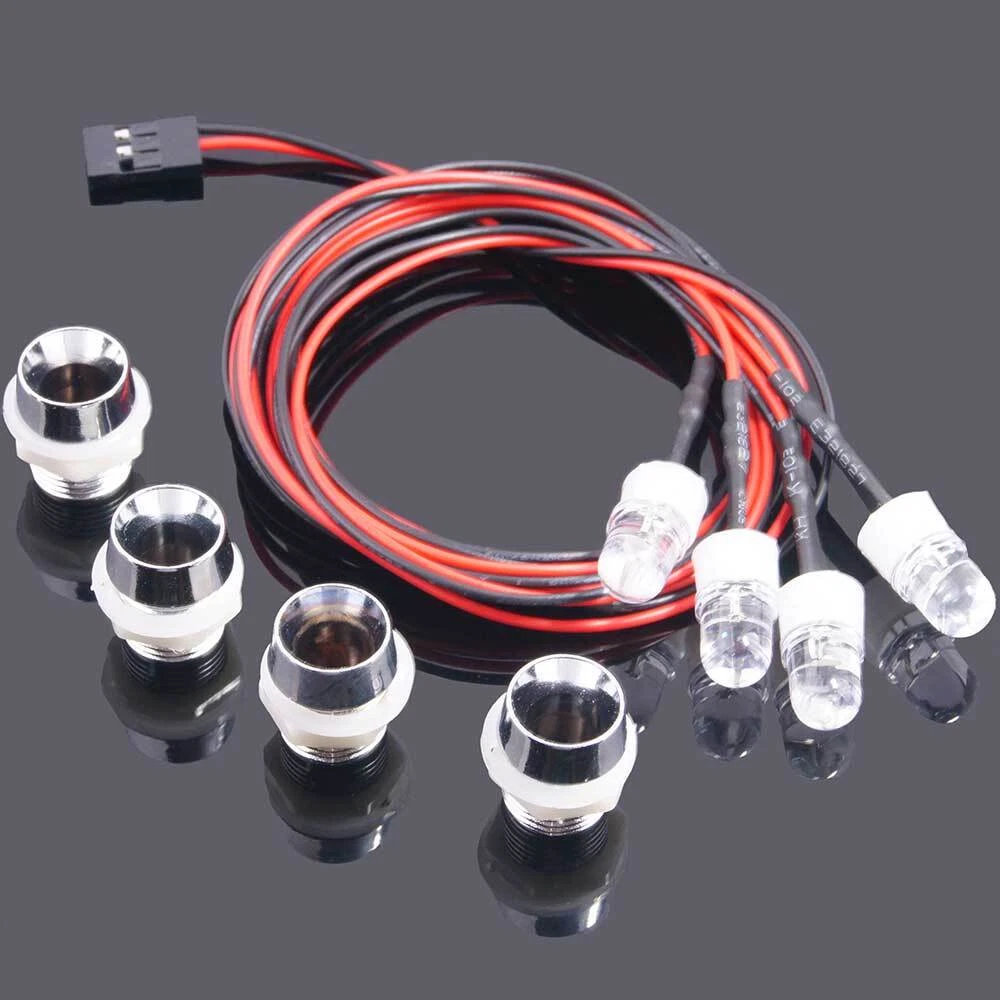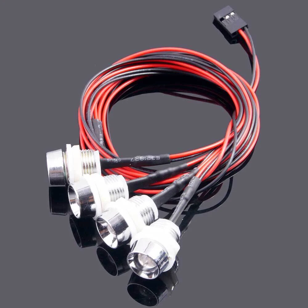 RC Front 8mm White Rear 8mm Red 4P Oil tram LED Headlight For Buggy Truck Car 100% Brand New Light Emitting Diode inline DIP resistance 1/4W color ring resistance 200Ω-4.3Ω Voltage: 3-9V Connector: JR Length: 70cm 4pc LED Combination sets; Light Emitting Diode Package: 2x White 8mm LED 2x Red 8mm LED OR 2x White 8mm LED 2x Orange 8mm LED 4pcs Plastic lampshade Note: Please take refer to your instruction of item number and photo. Factors such as lighting, contrast and color display may cause the photo to look different from the actual product.
