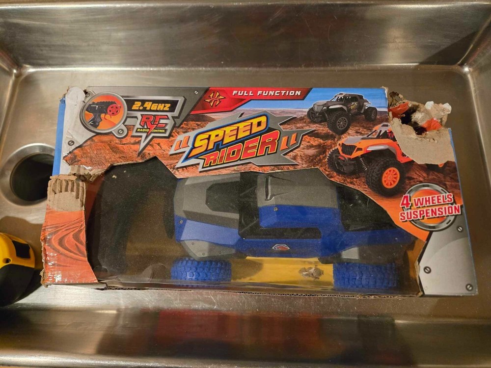 RC MACTCO TOOLS Speed Rider - new in box. Box is rough but the car is new. This street riders are fast, fun, and rugged. Features 2.4 GHz full function radio control with a high-speed motor, heavy-duty four-wheel drive suspension, and all-terrain tires. Start it up as soon as you buy it because the batteries are included. Ready, set, go! These assorted street riders are fast, fun, and rugged. Features 2.4 GHz full function radio control with a high-speed motor, heavy-duty four-wheel drive suspension, and all-terrain tires. Start it up as soon as you buy it because the batteries are included. .