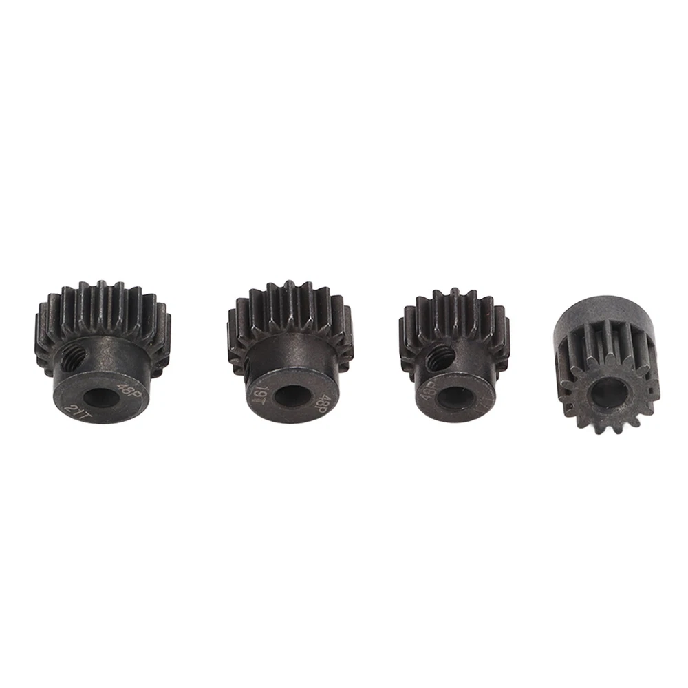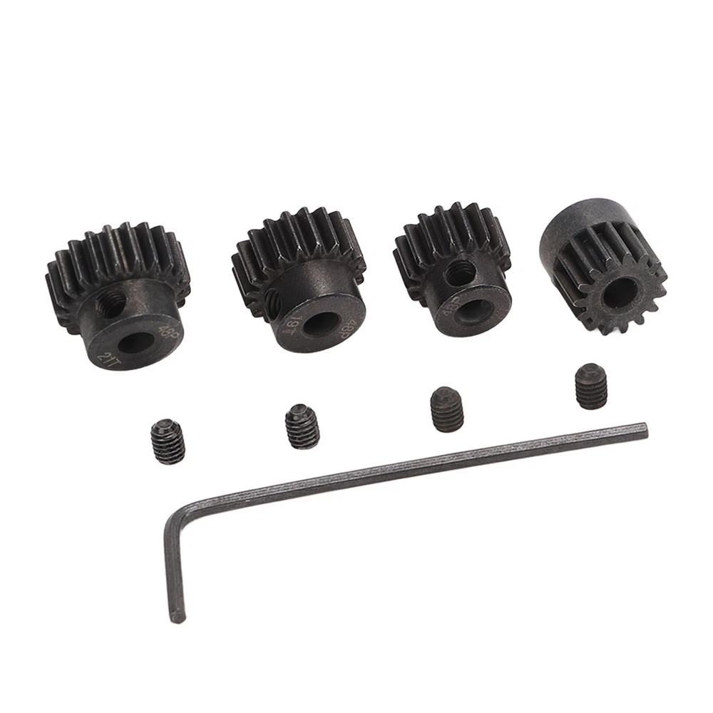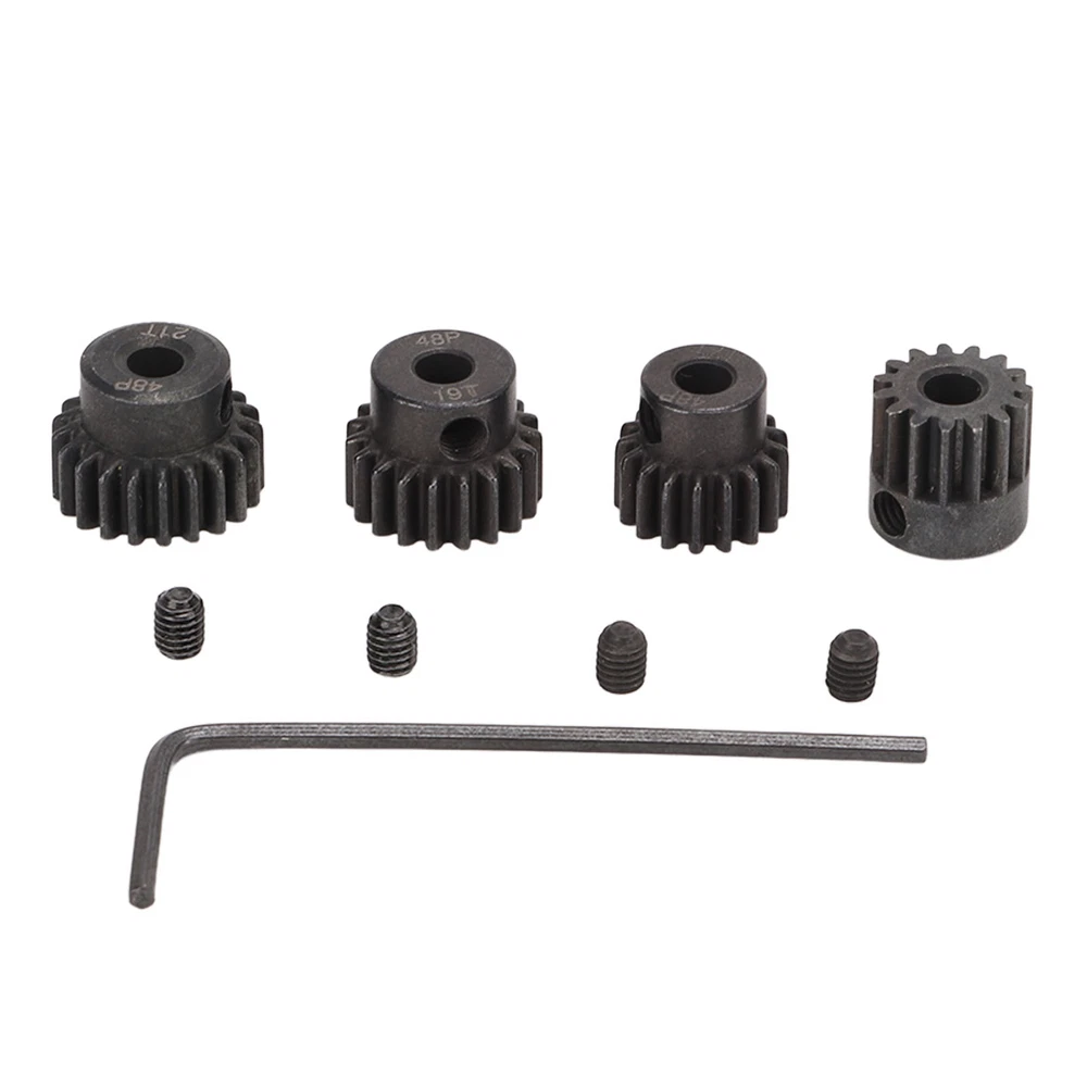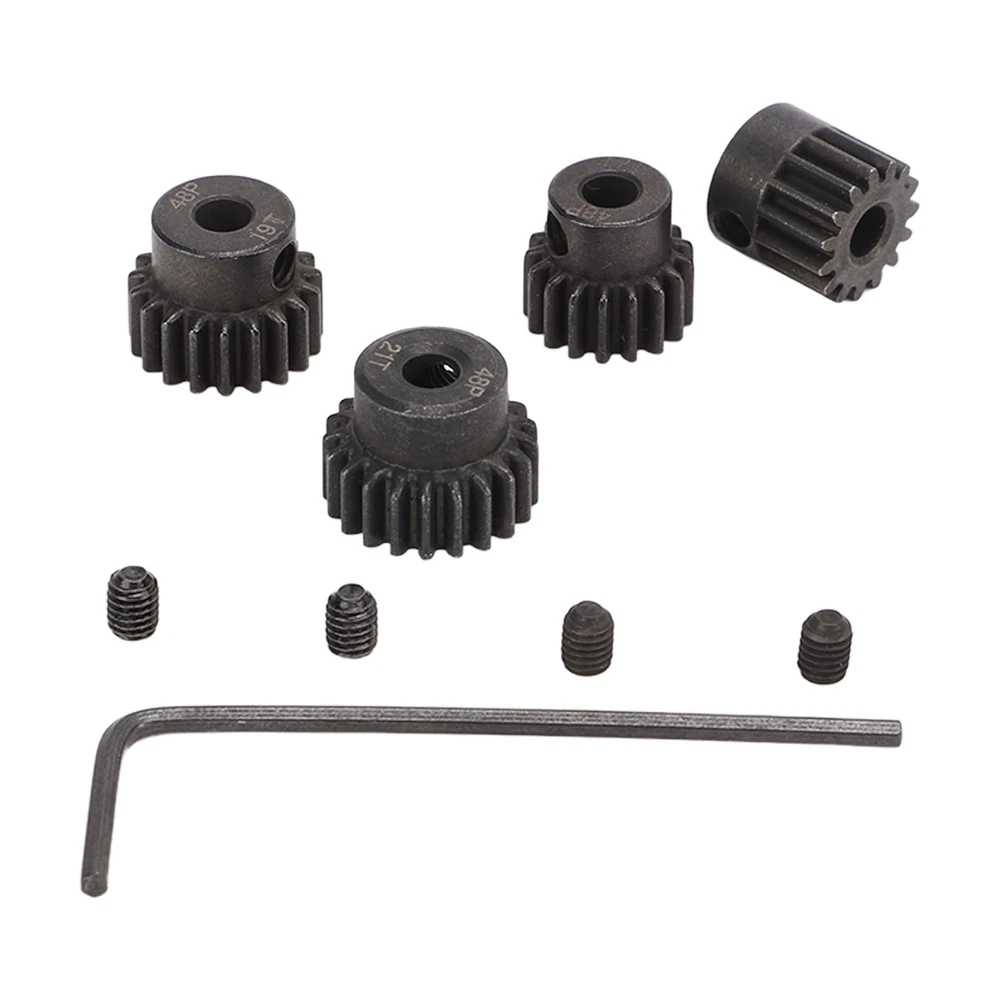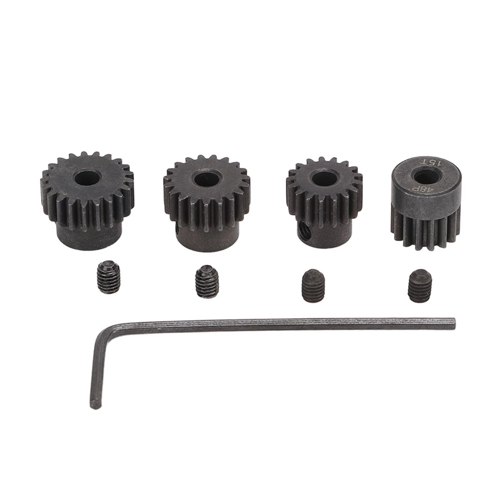 Feature: 1. High Quality Materials: Made of powder metallurgy, strong wear resistance and corrosion resistance. 2. Rust Resistant: The surfaces of the gear are treated with anti rust, which has good performance and long service life. 3. Easy Installation: Comes with fixing screw holes, easy to install and easy to operate, and there are machine screws in the package. 4. 4 Pinion Gears: 4 kinds of pinion gears with different numbers of teeth are provided, which are precisely machined, and the good machining makes the gears roll smoothly. 5. Applicable Scene: Ideal replacement for old or damaged originals for 1/10 RC car 3.175mm brushless motor shaft. Specification: Item Type: RC Motor Pinion Gear Set Material: Powder Metallurgy Gear T Number: 15T, 17T, 19T, 21T Radial Spacing: 48P Inner Shaft Diameter: Approx. 3.175mm / 0.13in 15T Size: ¢9x9mm 17T Size: ¢10x9mm 19T Size: ¢11x9mm 21T Size: ¢12x9mm Applicable: Suitable for 1/10 Remote Control Model Car 3.175mm Shaft Brushless Brush Motor Package List: 4 x Motor Gear 4 x Machine Screw 1 x Wrench Note: 1. Manual measurement, allow 1‑3mm error, thank you! 2. Due to the difference between different monitors, the picture may not reflect the actual color of the item.