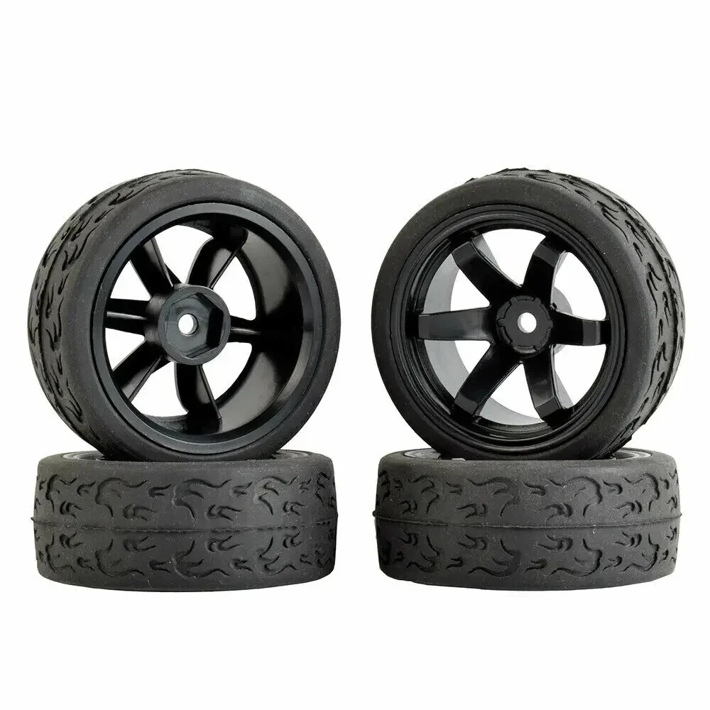 100% Brand New Plastic Wheel / Rubber Tires Outer Diameter : 64mm Width: 26mm Wheel Diameter: 52 mm Wheel Width: 26mm Wheel Drive Hex: 12 mm Offset 6mm Quantity: tiresx4pcs+wheelx4pcs Tires and Wheel Not Glue, You can be split. NOTICE: The wheels and tires are not glued together and must be glued before use. Please carefully check the tire size before purchase, whether it is the same as your model tire size, and confirm it again before payment, so as not to return the refund, thank you, wish you a happy shopping.