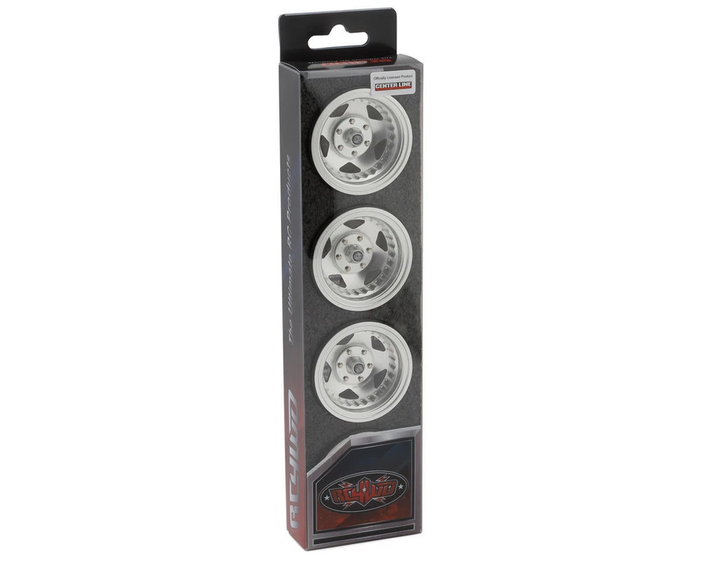 Beadlock Wheels Overview: RC4WD Center Line 1.9-inch Convo Pro Deep Dish Beadlock Wheels. These wheels are officially licensed by the Center Line Wheel Company, giving them an authentic design that mimics the iconic Convo Pro wheels, and are intended for use on 1/10 rock crawlers and trail trucks to enhance the scale realism and appearance of your rig. These wheels are crafted with precision using CNC machining from high-grade billet aluminum, ensuring both strength and a superior finish. The deep dish beadlock style offers an aggressive and eye-catching appearance, perfect for those who want their vehicle to stand out. The beadlock system ensures that the tires remain securely in place during off-road adventures, providing both visual flare and funcionality. Note: Installing on SCX10 III requires the RC4WD 12mm extension hex wheel adapters (7mm) (Z-S1825) Installing on Traxxas TRX-4 trucks requires the RC4WD 12mm Wheel Hex Conversion for Traxxas TRX-4 (RC4ZS1844) Due to many different methods to design tires and wheels, RC4WD has no control over other manufacturers' products. So RC4WD can only guarantee that RC4WD tires and wheels fit perfectly together. In some cases, RC4WD wheels and tires will work with other brand wheels and tires, but RC4WD can not guarantee the outcome. Features: Officially licensed by the Center Line Wheel Company Extremely scale detailed replica of the real 1:1 wheels Enhances the scale realism of 1/10 rock crawlers and trail trucks CNC machined from high-grade billet aluminum for superior strength Premium beadlock system holds tires firmly in place Fits standard 12mm hex hubs Specifications: Scale: 1/10 Wheel Size: 1.9in Outer Diameter: 2.14in (54mm) Width: 1.18in (30mm) Hex Size: 12mm Center Hole OD: 0.20in (5.2mm) Negative Offset: 0.25in (6.3mm) Wheel Weight (Each): 2.88oz (81.9g) Includes: (4) RC4WD Center Line 1.9" Convo Pro Deep Dish Beadlock Wheels (1) Miniature Scale Hex Bolt Tool (1) RC4WD Logo Decal (1) Center Line Decal Sheet About Us | View Store