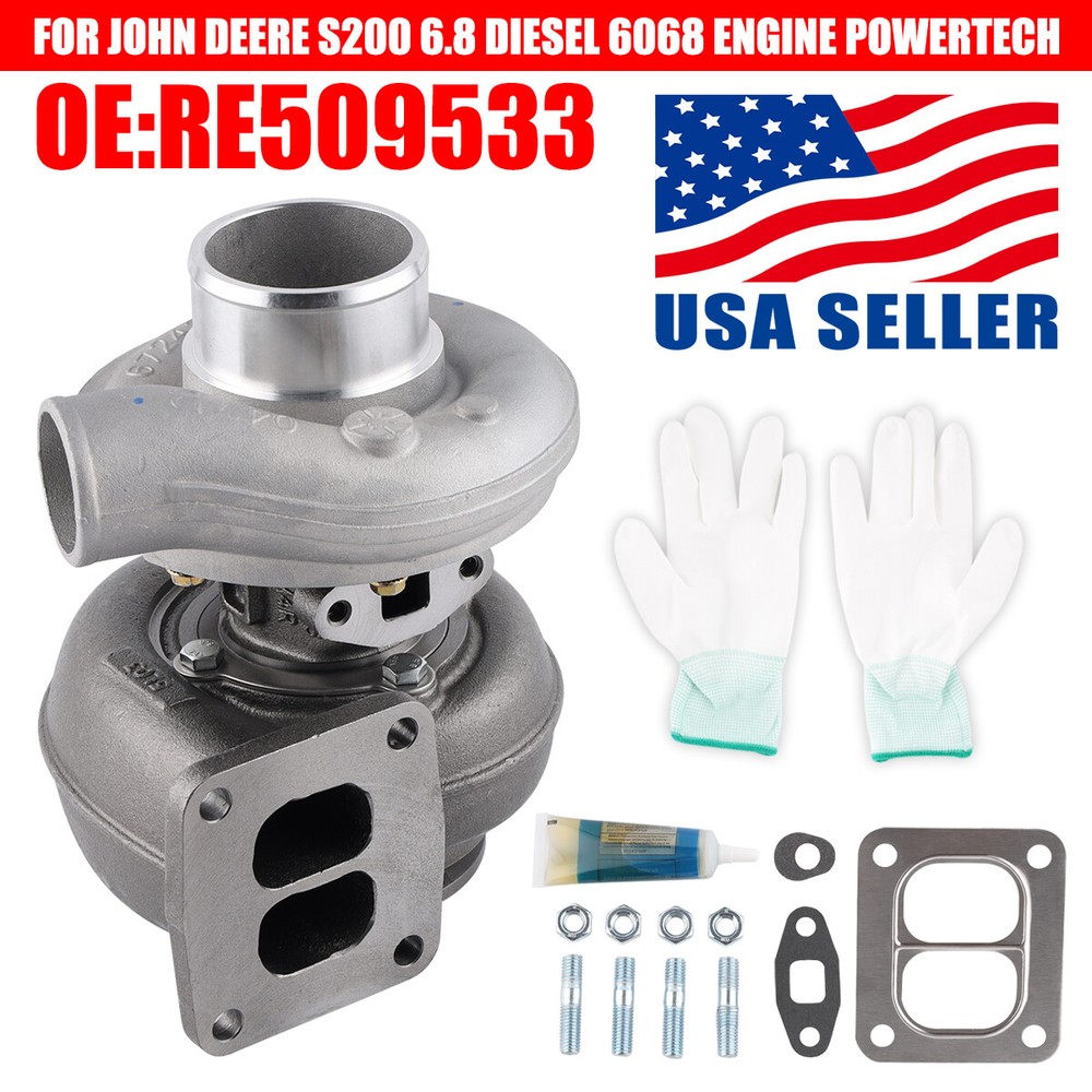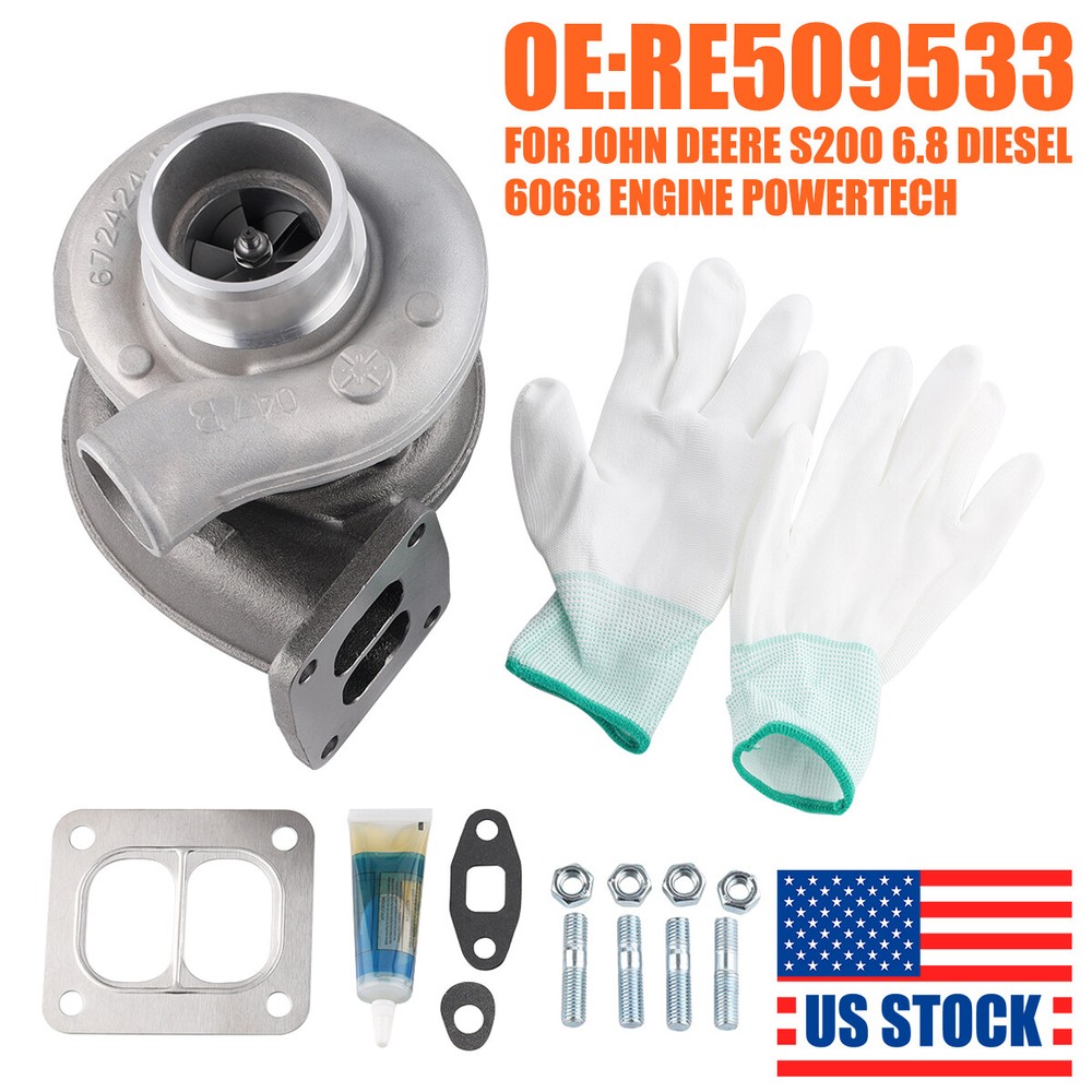 Product Description RE509533 Turbocharger Turbo For John Deere S200 6.8 Diesel 6068 Engine Powertech Features: 1.Good Quality: High quality for long-lasting durability, engineered from high-quality materials to improve the reliability and durability. 2.This compressor and turbine housing is made of high grade alloy to rapidly dissipate heat at extreme rotate speed, ultimately extending the service life of the product. 3.Each part is crafted with hard-wearing strength and durability to ensure your 177262 Turbocharger can withstand the rigors of the road. 4.We have professional knowledge, quality products, fast shipping, and unparalleled customer service. 5.Warranty:1 year. Common symptoms of a Bad turbocharger: 1. Loud Siren Noise; 2. Poor Acceleration; 3. Excessive Exhaust Smoke; 4. Increased Oil Consumption; 5. Engine Management Light. Specifications: Turbo Model: S200-70H18AJ-BX/1.1570DJ2 Engine:6068H Powertech Displacement:6.8L, 6800 ccm Fuel:Diesel KW: 183 RPM Max: 2400 Part Number: 177262, RE509434, RE509533, RE509532 Fitment: 2001-07 John Deere Powertech Various 6068H Engine Package Contents: 1 x Turbocharger Note: Please Carefully Check Whether the OE Number And Picture are What You Need Before Buying. If You are Not Sure Whether It Fits, Please Write to us. If There are Any Problems, Communication by Letter Will be More Effective. No Instruction Included, professional installation is highly recommended. Payment We accept PayPal only. If buyer want to delay the payment because of financial problem, please contact me by the ebay message within 3 days Payment via PayPal (PayPal accepts all major credits/debit cards and eCheque) ECheque payment will tak e 3-10 days to get clear, thus DELAYing the shipment. Shipping Handling time: 1 business day (Orders are not processed on weekends & holidays) Tracking information will be sent once item is shipped. Local pick-up is unavailable at the moment. For international shipping and shipping to Guam, Hawaii and Alaska, Please contact us before placing the order. Item is shipped to ebay address. Leaving correct address can minimize delay. Terms For any issues with Defects, Return, Item Exchange request, please contact us first and send us a message first before opening any type of case or request. We devote ourselves making EVERY CUSTOMER in 100% Satisfactory and resolve any problem. We highly value and appreciate your business. Thank you. No returns will be accepted without an RMA number. Please contact us for the RMA number. Return is acceptable within 30 days of delivery. Return for replacement or money back is optional. Returned items must be in the brand new, unaltered and resalable condition. Seller is not responsible for any labor cost, expense in a dealer store, or damage due to wrong installation. Returns All messages will be answered within 24 office hours. Please contact us either by clicking "contact seller" in the "purchase history" section or simply click "ask a question" at the bottom of this page. If you are unsatisfied with our item or service, please contact us before leaving any feedback. We are committed to resolve all issues in a friendly and satisfactory manner. We always reply to messages within 2 business days (off-duty at weekend). If you do not get a response from us, then please check your junk or spam mailbox. Contact Us All messages will be answered within 24 office hours. Please contact us either by clicking "contact seller" in the "purchase history" section or simply click "ask a question" at the bottom of this page. If you are unsatisfied with our item or service, please contact us before leaving any feedback. We are committed to resolve all issues in a friendly and satisfactory manner. We always reply to messages within 2 business days (off-duty at weekend). If you do not get a response from us, then please check your junk or spam mailbox. powered by
