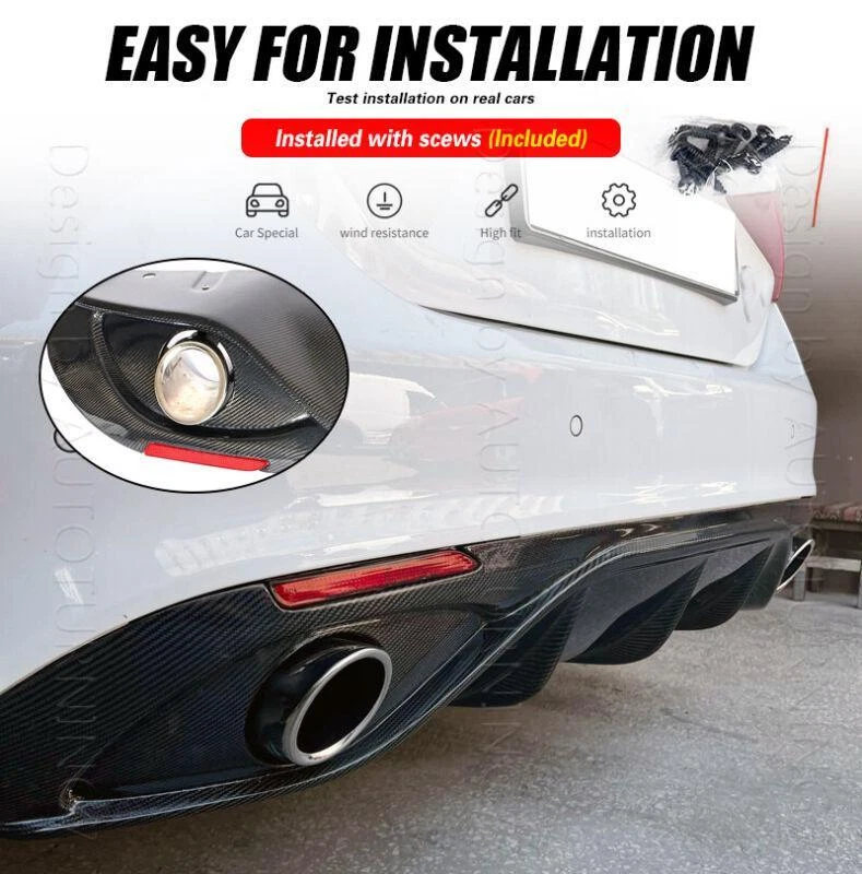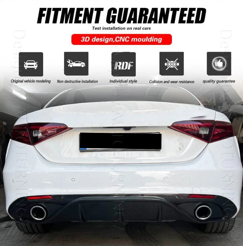 Fitment: Fit for Alfa Romeo Giulia Base Sedan 2016-2020 Specifications: Product Name: Rear Bumper Lip Material: Carbon Fiber Package Size: 162*48*20cm Package Weight: 6.48kg Features: • Made of High Quality Lightweight Carbon Fiber. • Improve the aerodynamic characteristics by enhancing the transition between the high-speed airflow below the vehicle and the free airflow in the surrounding atmosphere. • Provide space for the airflow under the vehicle to decelerate and expand, thereby providing pressure recovery by providing a degree of "wake fill" or more accurately. • Does not cause excessive airflow separation and resistance and keep driving safety. • Sport style rear diffuser, perfect for decoration, increase both road safety and racing style. Carbon Fiber Rear Bumper Lip FOR ALFA The Rear Bumper Lip is one of the simplest mods you can do to the exterior of your car that will give your car that completely different look. Not only are spoilers meant for great looks, they also help Prevent the rear of the car from scratching. Fitment: Fit for Alfa Romeo Giulia Base Sedan 2016-2020 Specifications: Product Name: Rear Bumper Lip Material: Carbon Fiber Package Size: 162*48*20cm Package Weight: 6.48kg Features: • Made of High Quality Lightweight Carbon Fiber. • Improve the aerodynamic characteristics by enhancing the transition between the high-speed airflow below the vehicle and the free airflow in the surrounding atmosphere. • Provide space for the airflow under the vehicle to decelerate and expand, thereby providing pressure recovery by providing a degree of "wake fill" or more accurately. • Does not cause excessive airflow separation and resistance and keep driving safety. • Sport style rear diffuser, perfect for decoration, increase both road safety and racing style. Package included: • Car Rear Lip Bumper Body Kits+Exhaust Tips+Reflector • Mounting Accessories Delivery details Payment and TAX Return Policy Warranty Contact us Delivery details NOTE: The shipping fee is only for the mainland of each country, it does not include the overseas territories, such as Virgin Islands (U.S.) , Puerto Rico, Hawaii , French Reunion Island, etc. But on ebay, when buyers from Puerto Rico and overseas territories , the shipping fee is equal to United States, it is NOT correct,. please contact us for correct shipping fee, or we will cancel the order. Sorry for the inconvenience, and thanks for your cooperation. 2. If you want to upgrade the shipping, please contact us before making payment, we will revise the shipping fee. 3. We will ship according to your Ebay address. Please make sure it is correct and include phone number for delivery. If you want to know the exact shipping time , please contact us . Payment and TAX 1.We accept Multiple Payment Methods Available: Credit Card, Debit Card, Gift Card, Apple Pay, Goggle Pay, PayPal and PayPal Cred. 2.Please leave note for your special request (e.g. Colors or Size) in ebay note when you pay the order. 3.Your must complete the payment within 7 days or Ebay will automatically open unpaid item case For US Buyer:The invoice value of each item is less than 800USD ,so you no need to pay any tariff . NON-US Buyer Note: Most countries are tax free based on our invoices, if tax is required, which will be buyer's responsibility. Return Policy 1.Customer satisfaction is our top goal. We believe our items are so outstanding. All products are quality checked. They are new and in good condition when shipped to our customers. We are convinced you will be happy with your Purchase. 2.If product is defective or damage upon arrival, or wrong product shipped, please contact us immediately. Returns accepted within 30 days of delivery date and item must be in original new condition, not worn or altered in any way with attached tags & wrap. Otherwise deal is final. Return shipping must be paid by buyer. Please always contact us to resolve any problems, we will do our best to satisfy you. Thanks very much. Warranty 30 Days Money Back It is our goal to provide 100% satisfaction and peace of mind to our customers. If you are not satisfied with the products for any reason within 30 days of receiving the item. (Items must be not opened in their original package. Any mark of installation, mounting, cutting, scratch or using will not be allowed.) Please be free to contact us first if you have any problems.thanks. Contact us 1.We are trying our best to explain all details of the products here! If you have any question, please feel free to contact us by Ebay message, and We will get back to you within 24-48 hours. 2.Customer satisfaction is our NO.1 priority. If you are not happy with the item that you purchase, please contact us first. We will try our best to solve the problem with you.Please leave us a positive feedback if you receive the item.Please do not leave negative or neutral feedback without any contact.If you haven't received item in 30 days, please contact us and we will arrange refund.We appreciate your business.Happy Bidding & Have a nice day! 3.Working hours: From 8 a.m. to 6 p.m. from Monday to Friday. From 8 a.m. to 12 a.m. on Saturday morning Holiday/Rest time: Saturday afternoon and Sunday