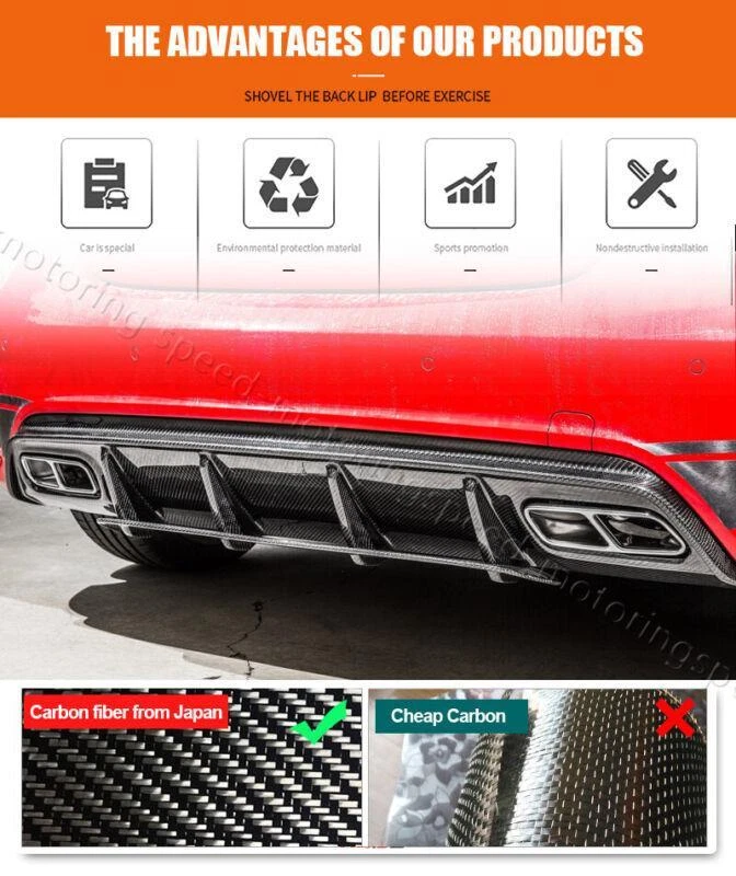 Fitment: Fit for Mercedes Benz W176 A Class A200 A250 A45 2013-18 Specifications: Product Name: Rear Bumper Lip Material: Carbon Fiber Package Size: 144*36*24cm Package Weight: 5.8kg Features: • Made of High Quality Lightweight Carbon Fiber. • Improve the aerodynamic characteristics by enhancing the transition between the high-speed airflow below the vehicle and the free airflow in the surrounding atmosphere. • Provide space for the airflow under the vehicle to decelerate and expand, thereby providing pressure recovery by providing a degree of "wake fill" or more accurately. • Does not cause excessive airflow separation and resistance and keep driving safety. • Sport style rear diffuser, perfect for decoration, increase both road safety and racing style. Carbon Fiber Rear Bumper Diffuser The Rear Bumper Lip is one of the simplest mods you can do to the exterior of your car that will give your car that completely different look. Not only are spoilers meant for great looks, they also help Prevent the rear of the car from scratching. Fitment: Fit for Mercedes Benz W176 A Class A200 A250 A45 2013-18 Specifications: Product Name: Rear Bumper Lip Material: Carbon Fiber Package Size: 144*36*24cm Package Weight: 5.8kg Features: • Made of High Quality Lightweight Carbon Fiber. • Improve the aerodynamic characteristics by enhancing the transition between the high-speed airflow below the vehicle and the free airflow in the surrounding atmosphere. • Provide space for the airflow under the vehicle to decelerate and expand, thereby providing pressure recovery by providing a degree of "wake fill" or more accurately. • Does not cause excessive airflow separation and resistance and keep driving safety. • Sport style rear diffuser, perfect for decoration, increase both road safety and racing style. Package included: • Car Rear Lip Bumper Body Kits • Mounting Accessories Delivery details Payment and TAX Warranty Policy Return Policy Contact us Delivery details NOTE: The shipping fee is only for the mainland of each country, it does not include the overseas territories, such as Virgin Islands (U.S.) , Puerto Rico, Hawaii , French Reunion Island, etc. But on ebay, when buyers from Puerto Rico and overseas territories , the shipping fee is equal to United States, it is NOT correct,. please contact us for correct shipping fee, or we will cancel the order. Sorry for the inconvenience, and thanks for your cooperation. 1. If you want to upgrade the shipping, please contact us before making payment, we will revise the shipping fee. 2. We will ship according to your Ebay address. Please make sure it is correct and include phone number for delivery. If you want to know the exact shipping time , please contact us . Payment and TAX 1.We accept Multiple Payment Methods Available: Credit Card, Debit Card, Gift Card, Apple Pay, Goggle Pay, PayPal and PayPal Cred. 2.Please leave note for your special request (e.g. Colors or Size) in ebay note when you pay the order. 3.Your must complete the payment within 7 days or Ebay will automatically open unpaid item case For US Buyer:The invoice value of each item is less than 800USD ,so you no need to pay any tariff . NON-US Buyer Note: Most countries are tax free based on our invoices, if tax is required, which will be buyer's responsibility. Warranty Policy We Warranty Our Product Within the Limited Warranty Policy Specified on Ebay. Please Email us if ou have any question regarding the warranty policy on a specific item. Most of the items are Aftermarket Parts and they are intended for off-road usage only, therefore no installation instruction will be included, Professional installation are Highly Recommended. We are not responsible for any damages to the item or the vehicle that occur during the installation of the item.Also, Please Make Sure Proper Installation is Performed as we are not responsible for item being missing or flew off after the installation. if you don't think the item can stay on the car properly, please do not attempt to drive the car with it and please check with professional shops/mechanics or contact us for assistance. Return Policy We Accept Returns Within the Return Period On Ebay. Return Authorization/Return Approval is Required For Every Return. So If you Wish to Make a Return On Your Purchase. Please Contact us Before You Send The item back For any damages occured to the item upon arrival, Please notify us within 5 days of the delivery so we can take proper action to fix the issue. So Please Kindly inspect and check the item condition upon arrival.For Any other Return Inquries, You can contact us within the return period to obtain return authorization/return approval. In case of return, the merchandise needs to be returned in original condition with origi- nal packaging in order to be eligible for an exchange or a refund. Items must be not opened in their original package. Any mark of installation, mounting, cutting, scratch or using will not be allowed. Contact us 1.We are trying our best to explain all details of the products here! If you have any question, please feel free to contact us by Ebay message, and We will get back to you within 24-48 hours. 2.Customer satisfaction is our NO.1 priority. If you are not happy with the item that you purchase, please contact us first. We will try our best to solve the problem with you.Please leave us a positive feedback if you receive the item.Please do not leave negative or neutral feedback without any contact.If you haven't received item in 30 days, please contact us and we will arrange refund.We appreciate your business.Happy Bidding & Have a nice day! 3.Working hours: From 8 a.m. to 6 p.m. from Monday to Friday. From 8 a.m. to 12 a.m. on Saturday morning Holiday/Rest time: Saturday afternoon and Sunday