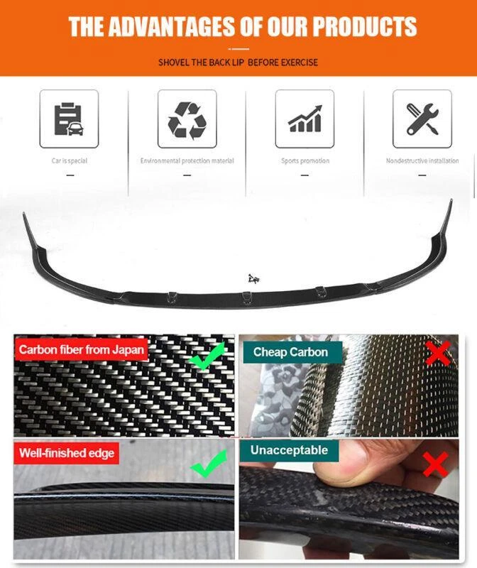 Fitment: Fit for Mercedes Benz C Class W205 C205 A205 C63 Coupe Pre-Facelift 2 Door 2015-2021, not for Base & Sport Models Specifications: Product Name: Front Bumper Lip Material: Carbon Fiber Package Size: 109*35*17cm Package Weight: 2.54kg Features: • Made of High Quality Lightweight Real Carbon Fiber. • Does not affect the height of the car chassis. • Prevent the front of the car from scratching. • Waterproof, anti-corrosion, abrasion resistance, high temperature resistance. • Beautiful appearance design, make the car look cool and new. Package included: • Car Front Lip Bumper Body Kits with self-adhesive glue tape and screws. JC Carbon Fiber Front Bumper Lip FOR BENZ The Front Bumper Lip is one of the simplest mods you can do to the exterior of your car that will give your car that completely different look. Not only are spoilers meant for great looks, they also help Prevent the front of the car from scratching. Fitment: Fit for Mercedes Benz C Class W205 C205 A205 C63 Coupe Pre-Facelift 2 Door 2015-2021, not for Base & Sport Models Specifications: Product Name: Front Bumper Lip Material: Carbon Fiber Package Size: 109*35*17cm Package Weight: 2.54kg Features: • Made of High Quality Lightweight Real Carbon Fiber. • Does not affect the height of the car chassis. • Prevent the front of the car from scratching. • Waterproof, anti-corrosion, abrasion resistance, high temperature resistance. • Beautiful appearance design, make the car look cool and new. Package included: • Car Front Lip Bumper Body Kits with self-adhesive glue tape and screws. Delivery details Payment and TAX Return Policy Warranty Contact us Delivery details NOTE: The shipping fee is only for the mainland of each country, it does not include the overseas territories, such as Virgin Islands (U.S.) , Puerto Rico, Hawaii , French Reunion Island, etc. But on ebay, when buyers from Puerto Rico and overseas territories , the shipping fee is equal to United States, it is NOT correct,. please contact us for correct shipping fee, or we will cancel the order. Sorry for the inconvenience, and thanks for your cooperation. 2. If you want to upgrade the shipping, please contact us before making payment, we will revise the shipping fee. 3. We will ship according to your Ebay address. Please make sure it is correct and include phone number for delivery. If you want to know the exact shipping time , please contact us . Payment and TAX 1.We accept Multiple Payment Methods Available: Credit Card, Debit Card, Gift Card, Apple Pay, Goggle Pay, PayPal and PayPal Cred. 2.Please leave note for your special request (e.g. Colors or Size) in ebay note when you pay the order. 3.Your must complete the payment within 7 days or Ebay will automatically open unpaid item case For US Buyer:The invoice value of each item is less than 800USD ,so you no need to pay any tariff . NON-US Buyer Note: Most countries are tax free based on our invoices, if tax is required, which will be buyer's responsibility. Return Policy 1.Customer satisfaction is our top goal. We believe our items are so outstanding. All products are quality checked. They are new and in good condition when shipped to our customers. We are convinced you will be happy with your Purchase. 2.If product is defective or damage upon arrival, or wrong product shipped, please contact us immediately. Returns accepted within 30 days of delivery date and item must be in original new condition, not worn or altered in any way with attached tags & wrap. Otherwise deal is final. Return shipping must be paid by buyer. Please always contact us to resolve any problems, we will do our best to satisfy you. Thanks very much. Warranty 30 Days Money Back It is our goal to provide 100% satisfaction and peace of mind to our customers. If you are not satisfied with the products for any reason within 30 days of receiving the item. (Items must be not opened in their original package. Any mark of installation, mounting, cutting, scratch or using will not be allowed.) Please be free to contact us first if you have any problems.thanks. Contact us 1.We are trying our best to explain all details of the products here! If you have any question, please feel free to contact us by Ebay message, and We will get back to you within 24-48 hours. 2.Customer satisfaction is our NO.1 priority. If you are not happy with the item that you purchase, please contact us first. We will try our best to solve the problem with you.Please leave us a positive feedback if you receive the item.Please do not leave negative or neutral feedback without any contact.If you haven't received item in 30 days, please contact us and we will arrange refund.We appreciate your business.Happy Bidding & Have a nice day! 3.Working hours: From 8 a.m. to 6 p.m. from Monday to Friday. From 8 a.m. to 12 a.m. on Saturday morning Holiday/Rest time: Saturday afternoon and Sunday