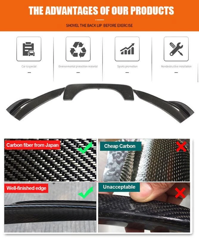 Fitment: Fit for BMW F86 X6M X6 F85 X5M 14-18 Specifications: Product Name: Rear Bumper Lip Material: Carbon Fiber Package Size: 68*29*23cm Package Weight: 2.36kg Features: • Made of High Quality Lightweight Carbon Fiber. • Improve the aerodynamic characteristics by enhancing the transition between the high-speed airflow below the vehicle and the free airflow in the surrounding atmosphere. • Provide space for the airflow under the vehicle to decelerate and expand, thereby providing pressure recovery by providing a degree of "wake fill" or more accurately. • Does not cause excessive airflow separation and resistance and keep driving safety. • Sport style rear diffuser, perfect for decoration, increase both road safety and racing style. Carbon Fiber Rear Bumper Lip FOR BMW The Rear Bumper Lip is one of the simplest mods you can do to the exterior of your car that will give your car that completely different look. Not only are spoilers meant for great looks, they also help Prevent the rear of the car from scratching. Fitment: Fit for BMW F86 X6M X6 F85 X5M 14-18 Specifications: Product Name: Rear Bumper Lip Material: Carbon Fiber Package Size: 68*29*23cm Package Weight: 2.36kg Features: • Made of High Quality Lightweight Carbon Fiber. • Improve the aerodynamic characteristics by enhancing the transition between the high-speed airflow below the vehicle and the free airflow in the surrounding atmosphere. • Provide space for the airflow under the vehicle to decelerate and expand, thereby providing pressure recovery by providing a degree of "wake fill" or more accurately. • Does not cause excessive airflow separation and resistance and keep driving safety. • Sport style rear diffuser, perfect for decoration, increase both road safety and racing style. Package included: • Car Rear Lip Bumper Body Kits • Mounting Accessories Delivery details Payment and TAX Return Policy Warranty Contact us Delivery details NOTE: The shipping fee is only for the mainland of each country, it does not include the overseas territories, such as Virgin Islands (U.S.) , Puerto Rico, Hawaii , French Reunion Island, etc. But on ebay, when buyers from Puerto Rico and overseas territories , the shipping fee is equal to United States, it is NOT correct,. please contact us for correct shipping fee, or we will cancel the order. Sorry for the inconvenience, and thanks for your cooperation. 1. Item will be shipped in 10 days, most within 2 days.usually it takes 7-30 days in transit to most countries. 2. If you want to upgrade the shipping, please contact us before making payment, we will revise the shipping fee. 3. We will ship according to your Ebay address. Please make sure it is correct and include phone number for delivery. If you have any questions , please contact us, we would do our best to serve you solve the problem. Payment and TAX 1.We accept Multiple Payment Methods Available: Credit Card, Debit Card, Gift Card, Apple Pay, Goggle Pay, PayPal and PayPal Cred. 2.Please leave note for your special request (e.g. Colors or Size) in ebay note when you pay the order. 3.Your must complete the payment within 7 days or Ebay will automatically open unpaid item case For US Buyer:The invoice value of each item is less than 800USD ,so you no need to pay any tariff . NON-US Buyer Note: Most countries are tax free based on our invoices, if tax is required, which will be buyer's responsibility. Return Policy 1.Customer satisfaction is our top goal. We believe our items are so outstanding. All products are quality checked. They are new and in good condition when shipped to our customers. We are convinced you will be happy with your Purchase. 2.If product is defective or damage upon arrival, or wrong product shipped, please contact us immediately. Returns accepted within 30 days of delivery date and item must be in original new condition, not worn or altered in any way with attached tags & wrap. Otherwise deal is final. Return shipping must be paid by buyer. Please always contact us to resolve any problems, we will do our best to satisfy you. Thanks very much. Warranty 30 Days Money Back It is our goal to provide 100% satisfaction and peace of mind to our customers. If you are not satisfied with the products for any reason within 30 days of receiving the item. (Items must be not opened in their original package. Any mark of installation, mounting, cutting, scratch or using will not be allowed.) Please be free to contact us first if you have any problems.thanks. Contact us 1.We are trying our best to explain all details of the products here! If you have any question, please feel free to contact us by Ebay message, and We will get back to you within 24-48 hours. 2.Customer satisfaction is our NO.1 priority. If you are not happy with the item that you purchase, please contact us first. We will try our best to solve the problem with you.Please leave us a positive feedback if you receive the item.Please do not leave negative or neutral feedback without any contact.If you haven't received item in 30 days, please contact us and we will arrange refund.We appreciate your business.Happy Bidding & Have a nice day! 3.Working hours: From 8 a.m. to 6 p.m. from Monday to Friday. From 8 a.m. to 12 a.m. on Saturday morning Holiday/Rest time: Saturday afternoon and Sunday