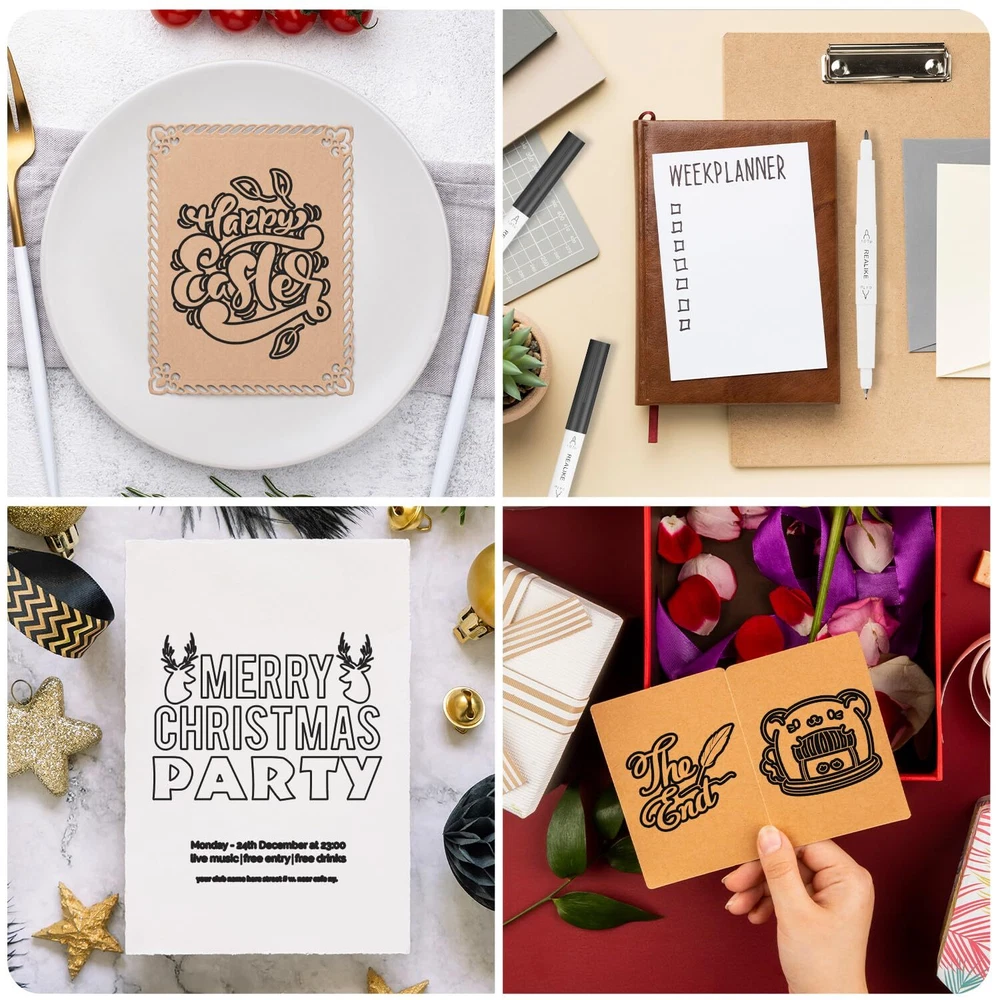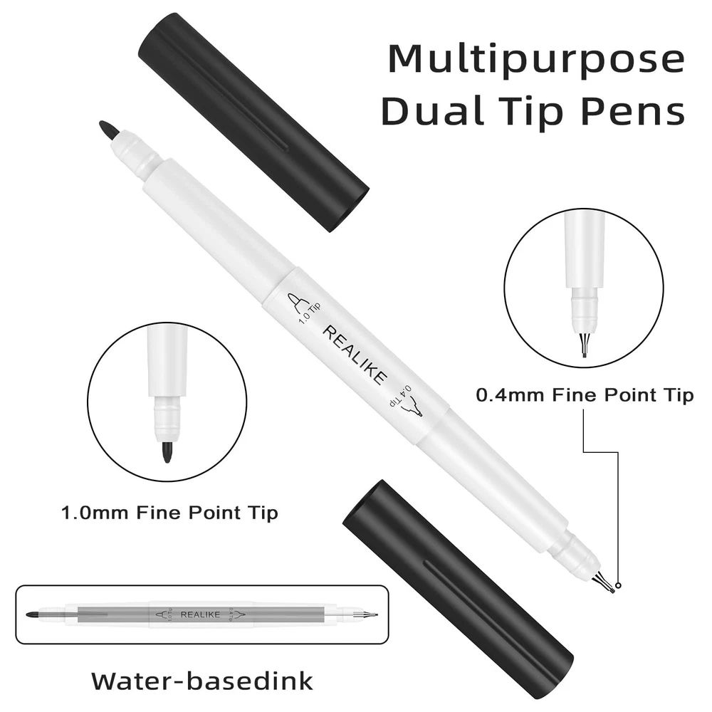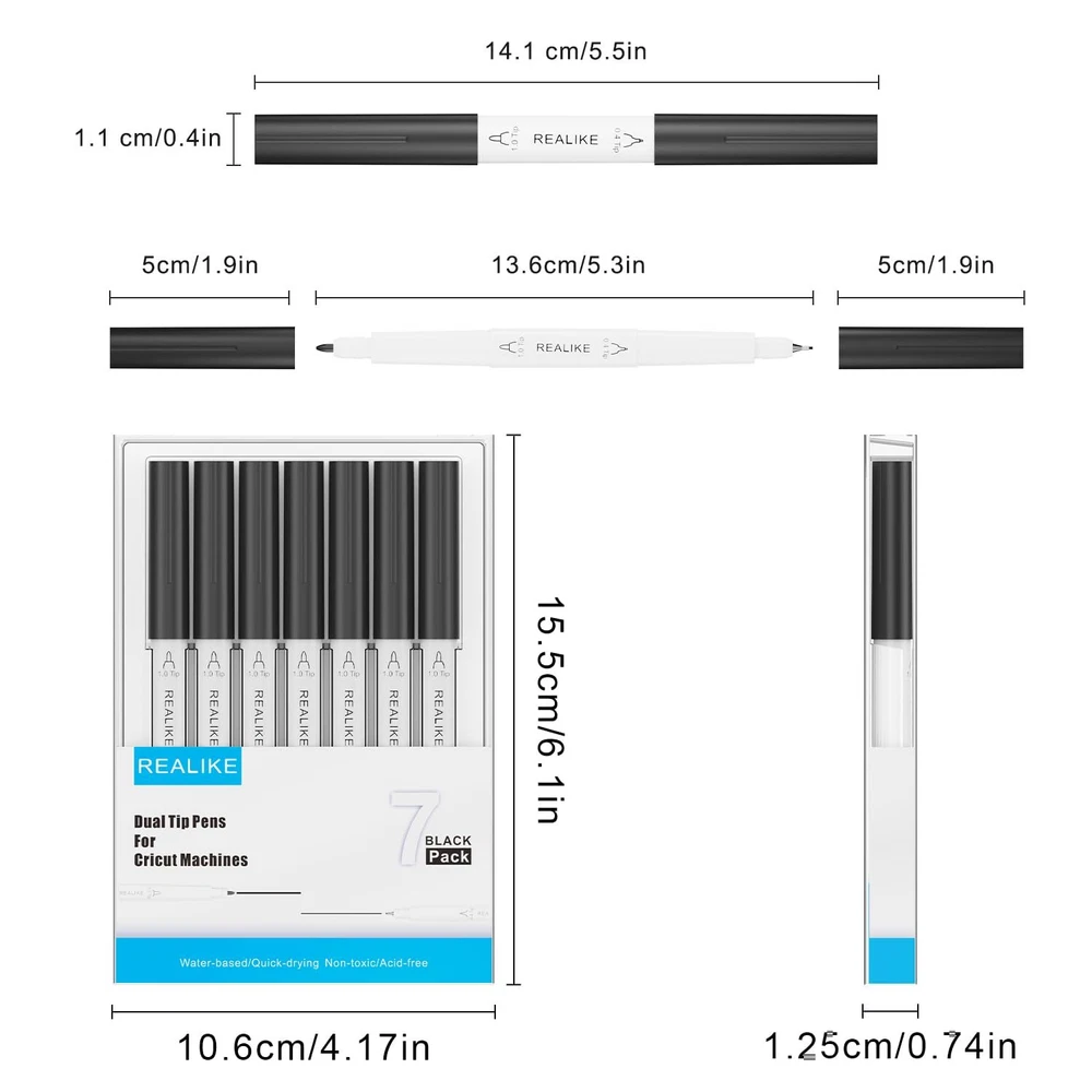 BLACK PENS FOR CRICUT MACHINE: REALIKE dual tip pens are designed specifically for Cricut Maker 3/Maker/Explore 3/Air 2/Air, they can write and draw perfectly with the cutting machine. These black marker pen set is a necessary item for Cricut accessories. MULTI-PURPOSE DUAL TIP PENS: REALIKE dual tip pens for Cricut cutting machine have 0.4 fine point tip and 1.0 tip, this convenient dual-tip design allows you easily switch between creating crisp details and laying down thick, thin, or varied lines in one stroke. Perfect for drawing lines,painting, writing, coloring, sketch, marker, manga, animation, arts design,journaling ,illustration etc. Hight QUALITY INKS : REALIKE pens use professional water-based, acid-free, and odorless ink , which is long-lasting and quickly dry. Please put on the pen cap in time when not in use. EASY TO STORE : REALIKE black pens set come with plastic storage case which is easy to carry and storage. For using in school, travel or used in the home and office. Great for invitations,handmade cards, scrapbooking and other writing/drawing craft projects.