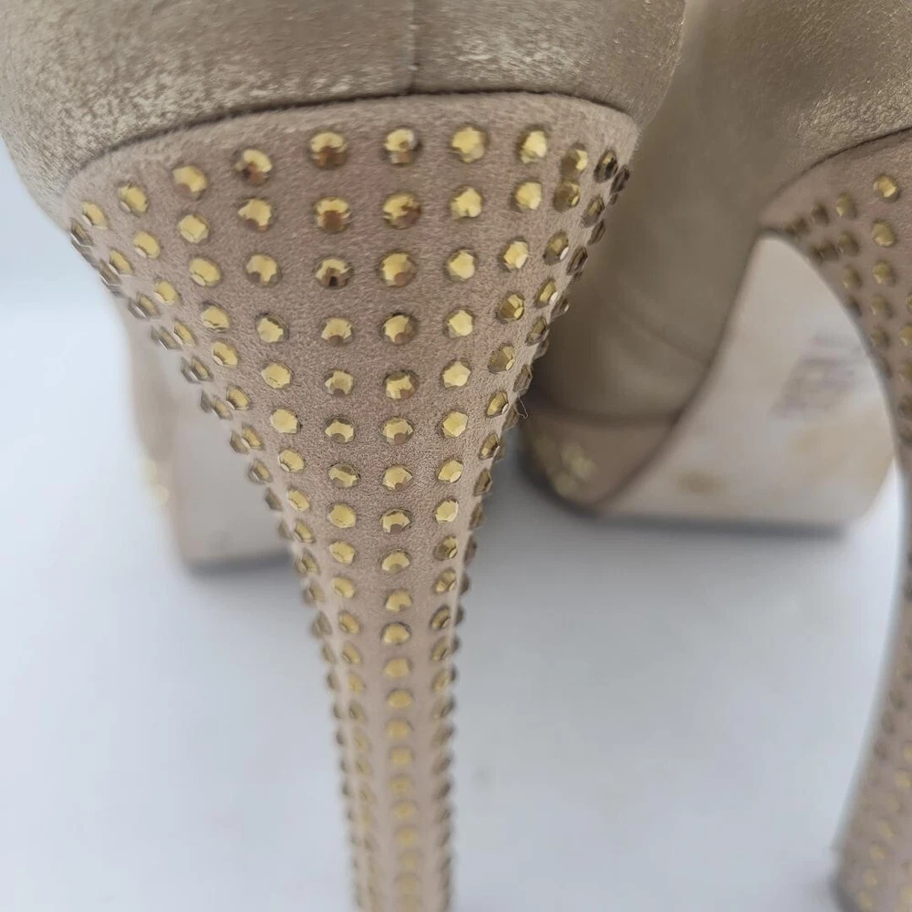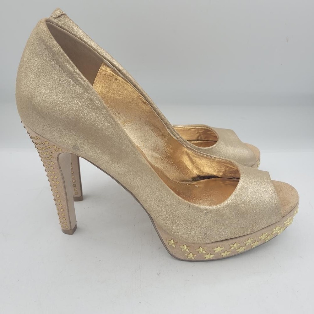 HomeREBA Chucky Gold Corrina Peep Toe Heels with Stars Size 7M