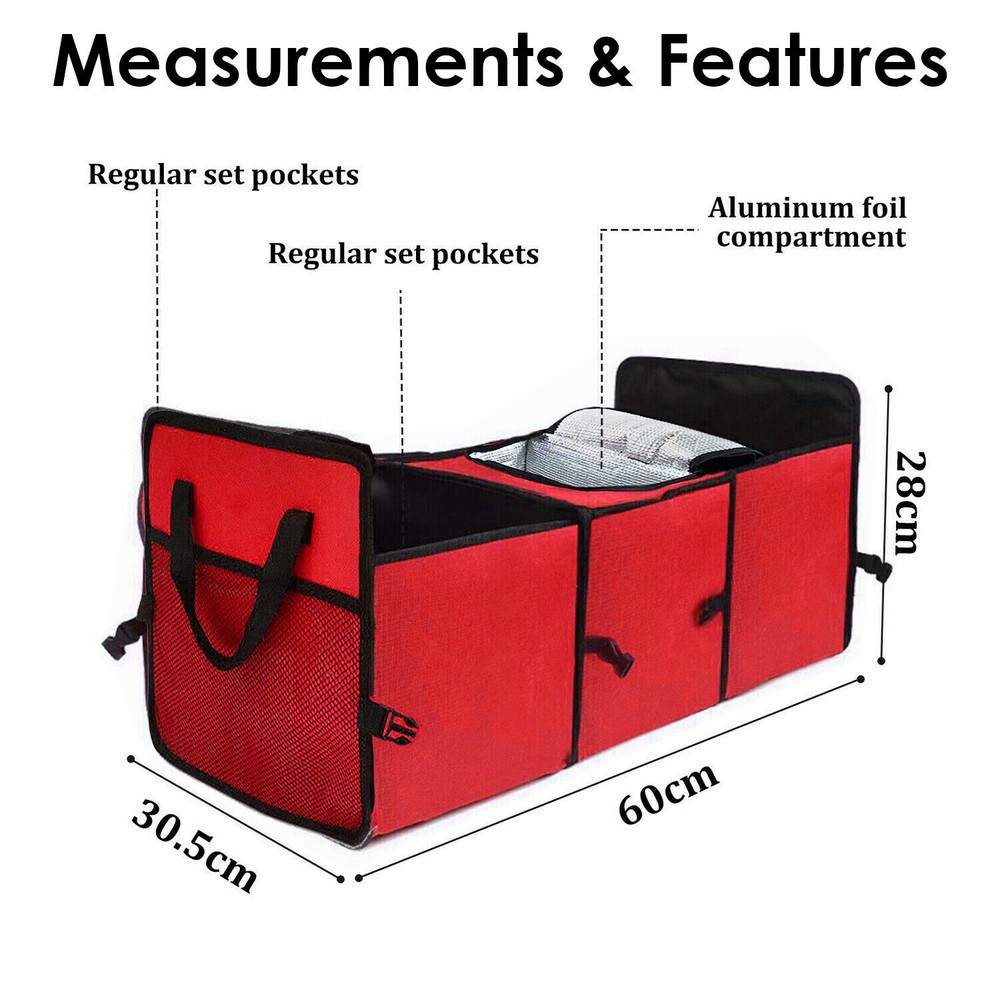 RED Collapsible Car Rear_Trunk Organizer Folding Storage Box Net Tidy Cooler Bag Product Description The multifunctional car boot organizer creates a neat and tidy trunk for you, with partitioned storage and no need to rummage through boxes to find things, curing your clutter. Features 【Lots of Storage】 This trunk organiser is divided into 3 large compartments with mesh pockets on the sides for quick division and storage of items. 【Trunk Organizer with Cooler】 As a powerful trunk organiser, we have added an insulated space that works well for keeping food fresh or for springing out ice cubes. 【Durable Material】 The car organiser and storage box is made of durable and waterproof Oxford cloth, which is more resistant to dirt, moisture and tears than non-woven fabric, creating a clean and hygienic environment for your belongings. 【Optimised Folding Design】 Unlike plastic boot organisers, which have always taken up a lot of space in the boot.ours folds easily to the size and thickness of a book. 【multi-purpose】 This practical car grocery organizer can be used not only for organizing the trunk space, but also in a variety of situations such as snacks in the pantry, camping picnics, outdoor sports equipment and more. - Color: RED - Unfolded Size: 60cm x 31cm x 28cm / 23.6" x 12.2" x 11” - (55L) - Material: Oxford fabric, Dacron and aluminum coating Package Included - 1 x Car Trunk Organizer We accept Paypal and majoy credit cards payment When you place an order, please choose a shipping method and pay for the order including the shipping fee within 48 hours. And please make sure your current address correct after your payment within 1-2 days! About Shipping 1. Receiving time = Processing time + Shipping time 2. Processing Time: Around 1-3 Days 3. Shipping Time: 15-26 Days By Air Mail 3-10 Working Days By Express We do not guarantee delivery time on all international shipments due to differences in customs clearing times in individual countries, which may affect how quickly your product is inspected! Important Notice >Transit Time Is Best Estimated But NOT Guaranteed As Transit Time Varies >Orders may be subject to import taxes, customs duties and fees levied by the destination country.Additional charges for customs clearance must be fulfilled by the recipient; We no control over these charges, nor can we predict what they may be. 100% Customer Satisfaction Is Our Top Priority For Any Reasons You Are Not Satisfied With The Products Within 30 Days Of Purchase, Return Or Exchange Can Be Issued, Customers Are Responsible For The Return Shipping Cost And Subsequent Replacement Shipping Cost For An Exchange Item. Replacement Item Will Be Processed And Shipped Upon Return And Inspection Of The Original Item. Return Items Must Be In Their Original Packaging And Unused Condition, Or They Will Be Rejected And Sent Back To You. Due To The Nature Of The Products We Sell, We Carefully Inspect All Packages Prior To Shipping. All Of Our Products Are Sold As Brand New, All Damaged Products Are Considered Damaged During Transit. If You Received A Damaged Or Broken Item, Please Save All Packaging Material And Paperwork And Contact Us Immediately So We Can Help You With The Damage Claim With The Shipping Carrier. No Claims Will Be Honored After 14 Days Upon Item Receive. Digital Photos Will Be Required For All Cases. All Products Come With A 60 Days Limited Warranty Against Manufacturer’s Defects. No Exchange Will Be Issued On Products That Have Been Damaged In Any Way. Warranty Does Not Applied To Improper Installation, Water / Fire Damage, Modification, Or Any Acts Of Nature . If you have any question or concern, please feel free to contact us via eBay massage directly, we will get back to you as soon as we are available ATTENTION : We do not answer any emails over the weekend Please send message to us.We will reply your message in 24 hours, Our working time: 9:00 AM-22:30 PM (GMT+ 08:00 Beijing) 1:00 AM -14:30 PM (GMT+ 00:00 London) 19:00 PM-08:30 AM (GMT- 06:00 USA/Canada) Why Choose us? 1. A tremendous variety of products-- With over 200,000 items in stock, we are one of the world's largest online stores in automotive aftermarket product sector. You'll have more choices than what you can ever imagine. What's more, we're updating with over 100 new arrivals per month! 2. Affordable prices -- we are offering the latest car parts and accessories for almost 20 years, we're always keeping up with the newest trends, while most importantly, making the prices as low as we can. 3. Free worldwide shipping -- Yep, you won't believe that you'll enjoy free worldwide shipping with us (unless stated otherwise),it's not a joke,but an absolute truth. 4. No-question refund and return-- Anything wrong issuing quality and breakage can be returned or refundable. Car Remote Central Door Locking Kit Red Thread Steering Wheel Cover Wiper Nozzle Gray Steering Wheel Cover
